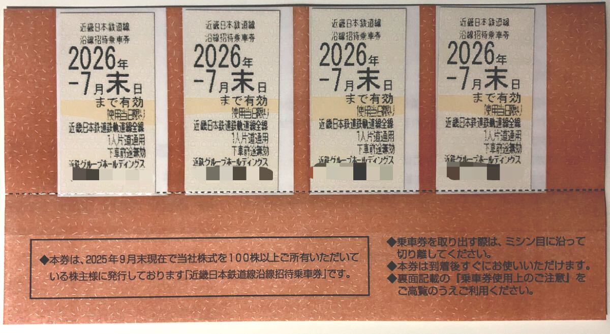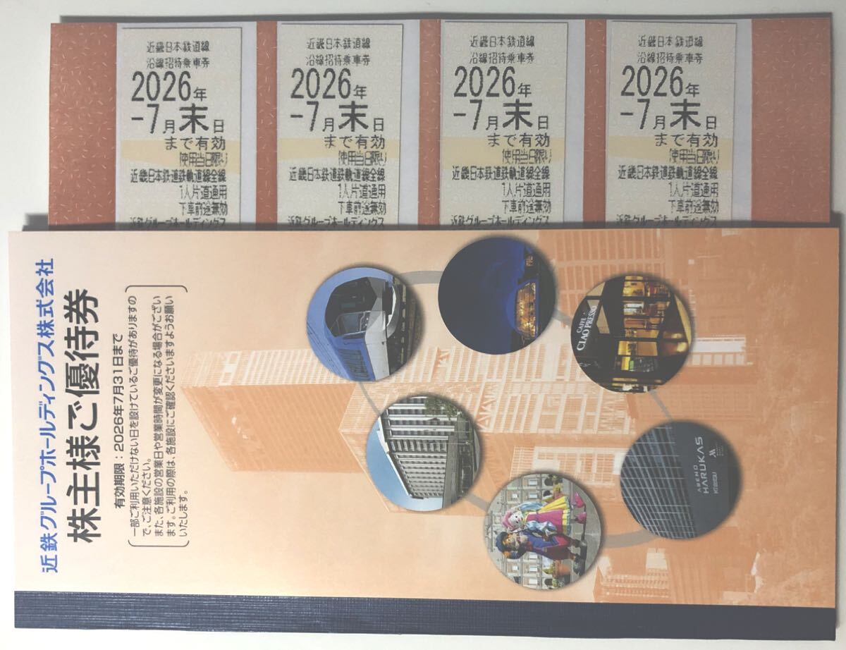 [最新 匿名配送 送料無料] 近鉄 株主優待 乗車券4枚セット+優待券冊子1冊 近鉄グループHD 近畿日本鉄道 有効期限 2026年7月31日