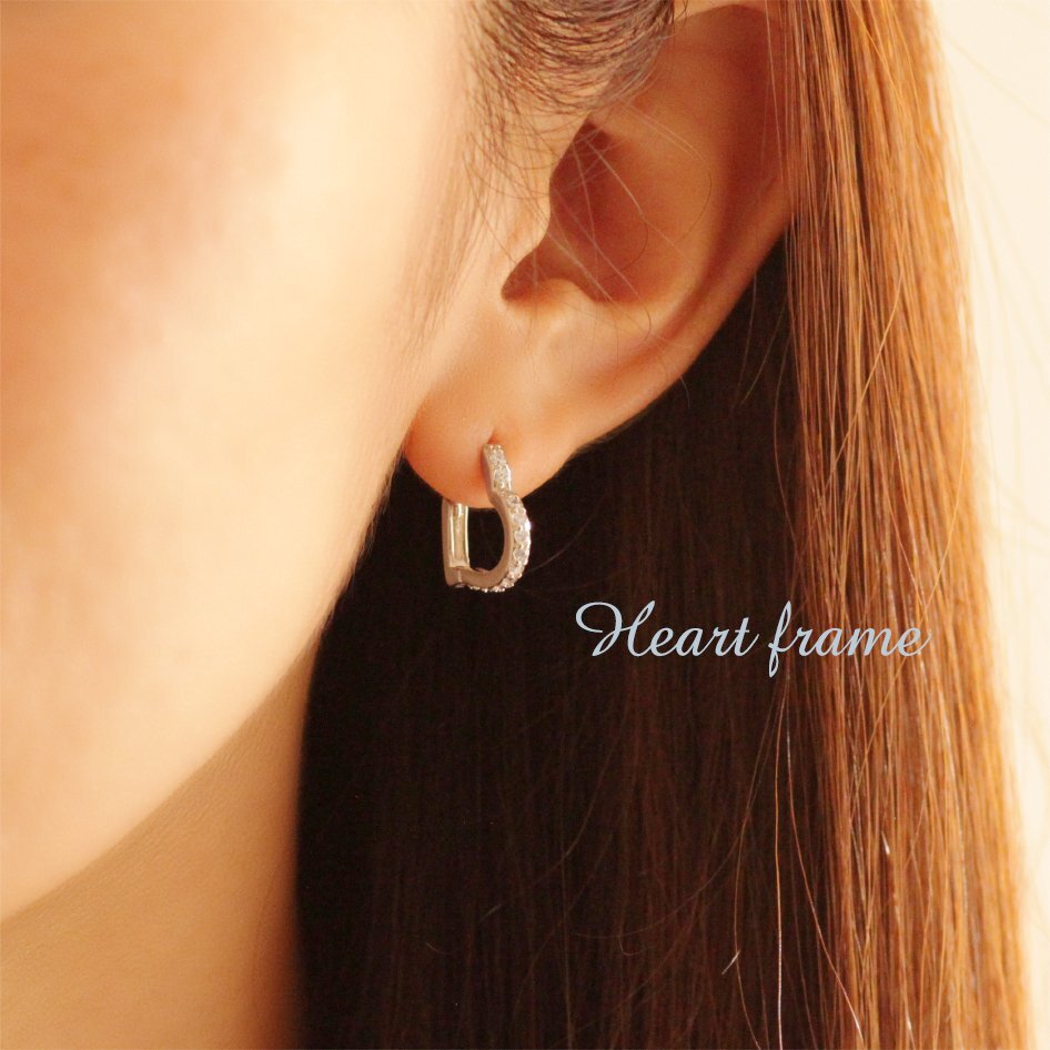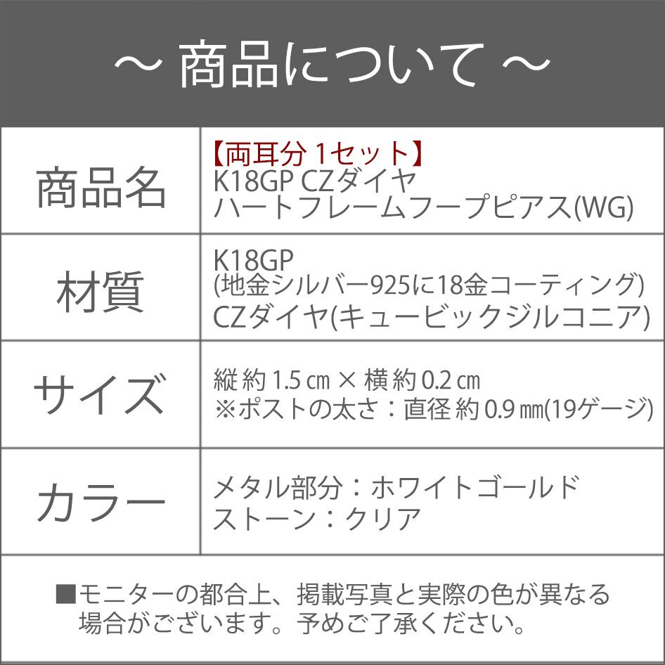 新品/フープピアス/K18GP/レディース/ハート/ピアス/おしゃれ/シンプル/ダイヤ/シルバー/18金/ホワイトゴールド/オープンハート/女性/プレ