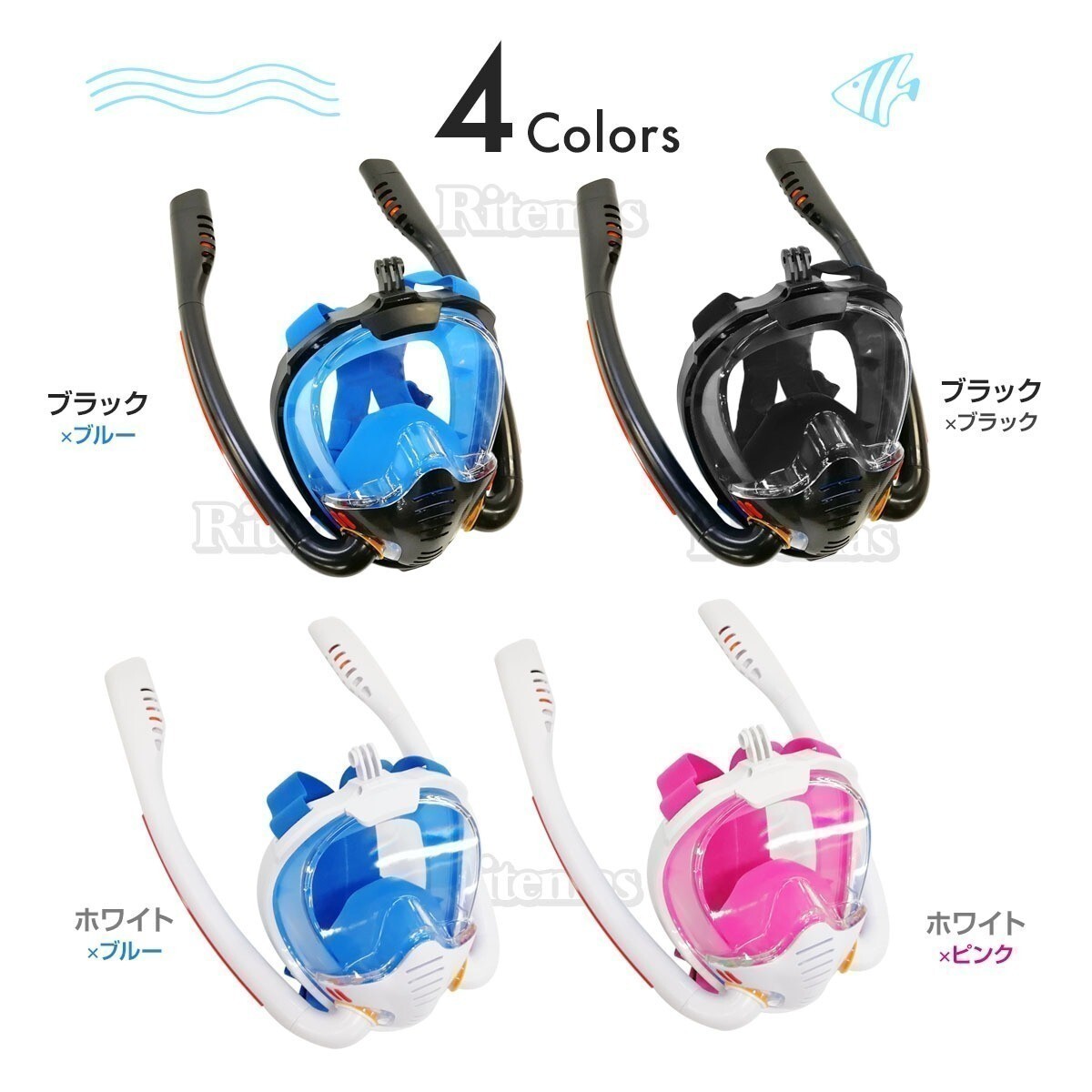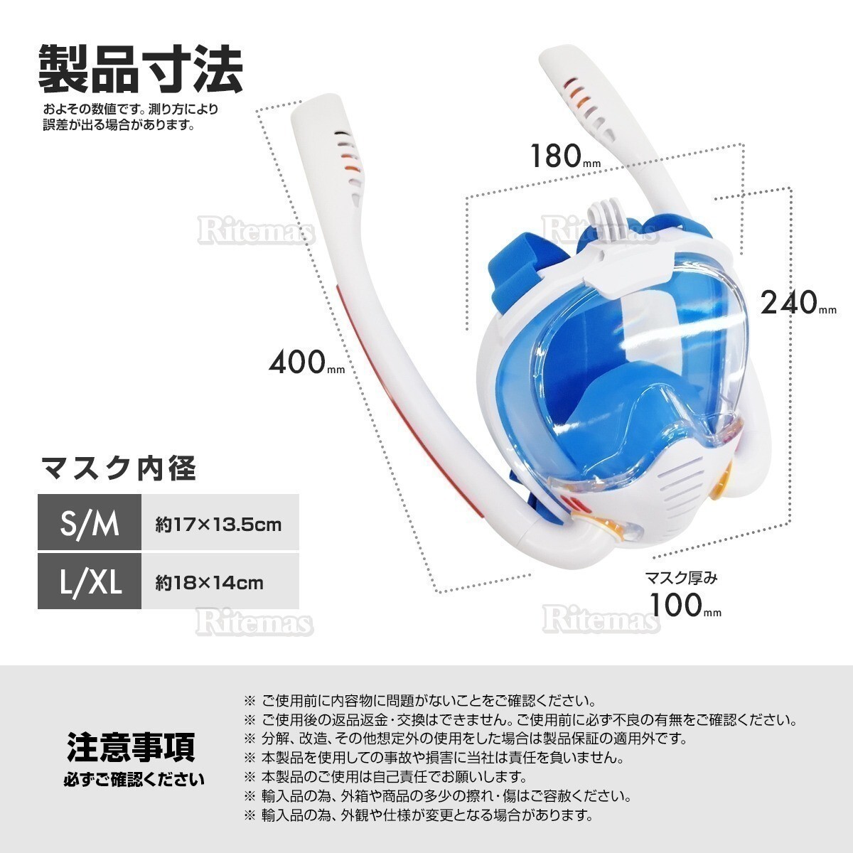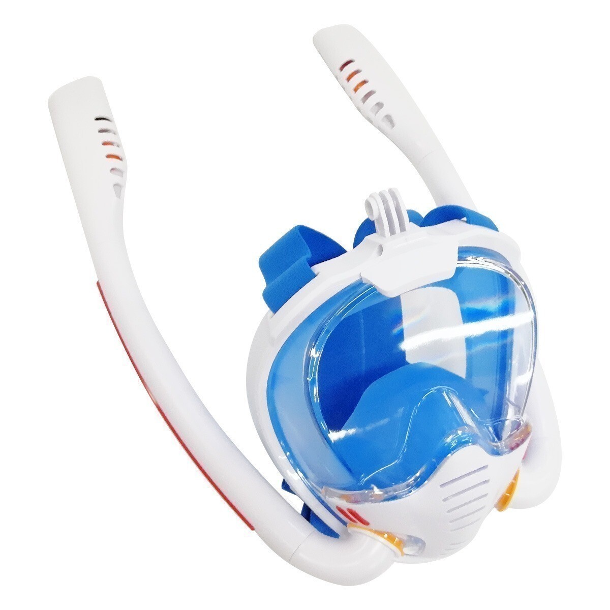 シュノーケルマスク フルフェイス型 ダブルチューブ 180度視野 男女兼用 ダイビング 水中メガネ ゴーグル スポーツカメラ取付可能 白 L XL