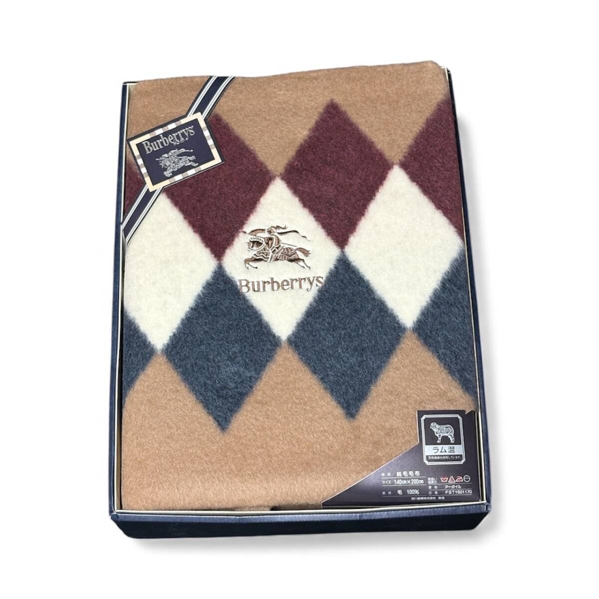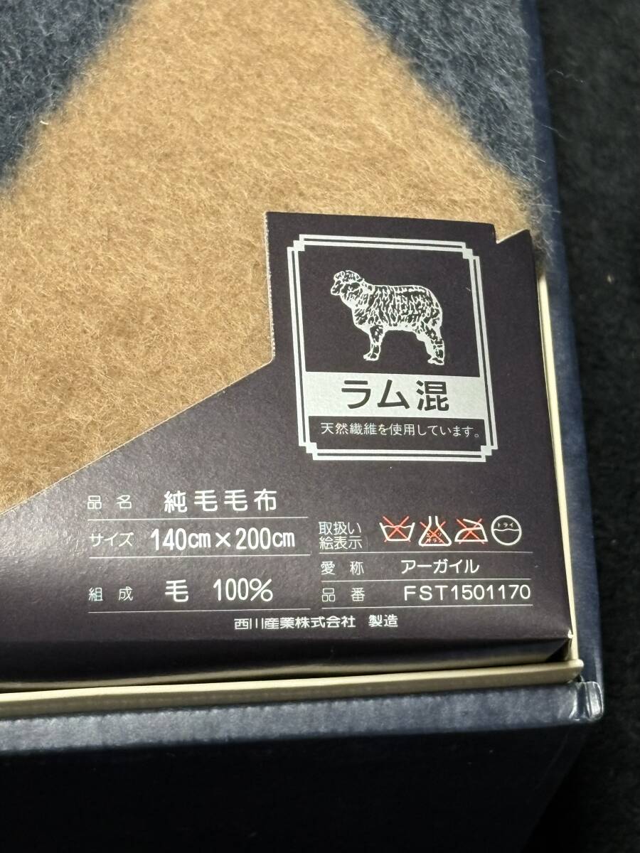②バーバリー ラム混 純毛毛布 140x200㎝ アーガイル 未使用 西川産業