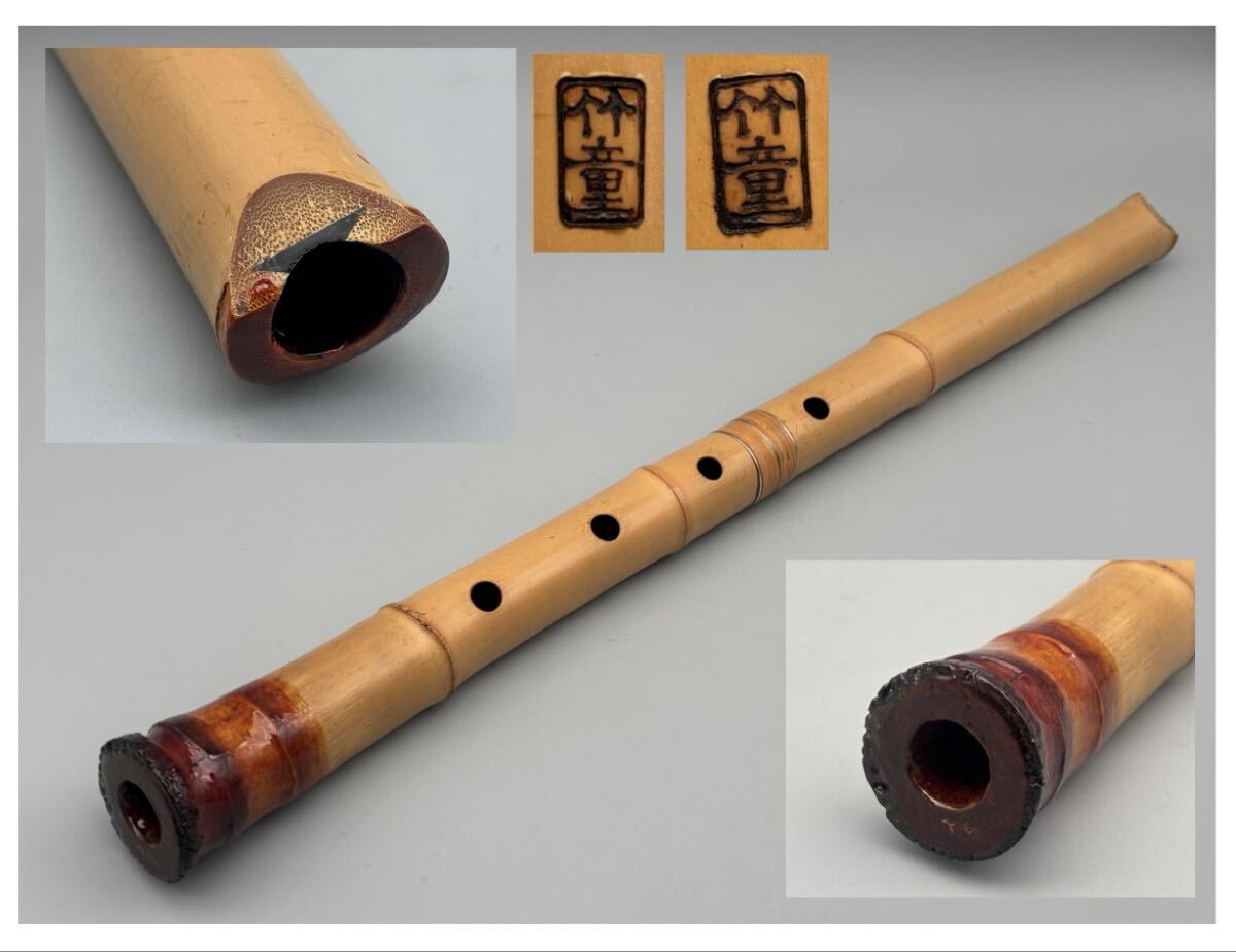 尺八 竹童 二印 銀三線 藤巻き 全長58cm 和楽器 管楽器 ⑥