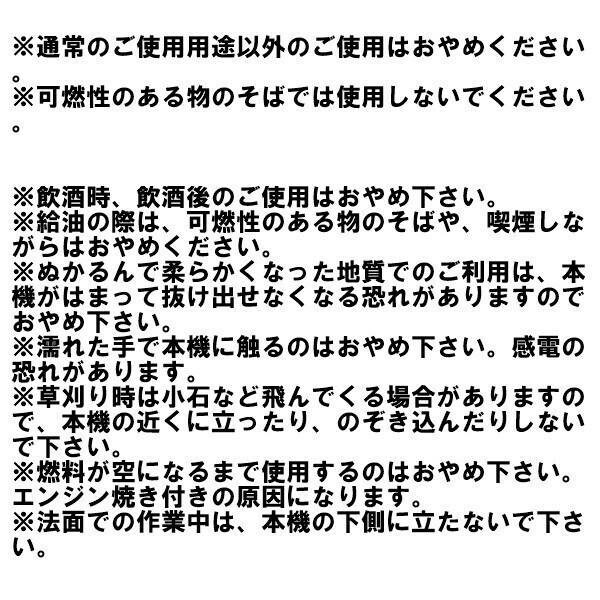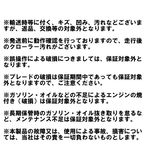 | 商品説明 | ※こちらはKM860の25馬力です。16馬力のものとエンジンが違います。 ※【ブラシレスモーター】ブラシレスモーターとブラシモーターの違い、放熱性、大電流・ハイパワー、機械的ノイズ、接点が無いため、それらのノイズ源がありません、 長寿命 ※【刈刃回転切替えスイッチ付き】刈刃スイッチをONにしないと、刃は回転しません。 ※こちらの商品は大型商品ですので、個人で御購入のお客様や、リフトをお持ちでないお客様への配送方法を、近隣の営業所止めとさせて頂いておりますので、御了承ください。 (リフトをお持ちでも個人様名義宛の発送は営業所止めとなります) ・型番:KM860・本体バッテリー用48V充電器付属(本体に発電機搭載ですので通常は充電器使用の必要はありません) ・本体サイズ:1160×1120mm×740mm(全長×幅×高さ) ・重量:350KG ・刈幅:800mm ・刈高:20-150mm ・最大出力:25馬力 ・使用最大傾斜角度:45° ・エンジンオイル 10Wー30 ・ミッションオイル 市販の農機具用ミッション・ギアオイル ・安心の1年間保証付 ・お買い上げ頂きました当商品は、安心の1年間保証付です。 ・保証期間内において、無償対応時の送料はお客様負担とさせていただきます。エンジン焼き付き、リモコンの故障は、保証対象外です。 ・配送業者の規定により、燃料など抜いた状態で発送しておりますので、必ず燃料やオイルを入れてからご使用ください。 ・梱包から出したら、各ボルトにゆるみが無いか、必ず確認して増し締めしてください。 ・作業前(毎回)にブレード周辺や各パーツのボルトやネジのゆるみが無いか、確認して下さい。ゆるんだまま作業をされますと、故障の原因になります。 ※注意事項 沖縄、離島への配送は不可です。ご了承下さい。 安心の『一年間保証』をお付けしましたが、保証期間中でも、無償対応時(修理の際の本体輸送や交換部品発送等)の送料はお客様負担とさせて頂いております。到着後7日以内の動作確認時に未使用の状態で不具合が見付かり、修理対象となった場合み、送料のご相談に応じます。一度でも使用された場合は、送料をご負担頂きますので、ご了承頂ける場合のみご購入下さい。 保証期間は商品到着日を含めての一年間となります。商品開梱日時やご利用開始日時ではございませんので、ご注意ください。 対象となる場合はメールにて当店までご連絡下さい。その際、故障(問題)箇所を撮影して頂き、メールに画像を添付して送って頂きます。 通常通りに過失などなくご使用頂いて自然発生した商品不具合に限り、無償で修理させて頂きます。 輸入商品の為、輸送の際に生じる多少の傷や汚れなどある場合がございますが、新品です。 保証期間終了後に依頼された修理は有償修理になります。 下記項目のいずれかに当てはまる場合は保証対象外となります。 ★消耗部品が自然摩耗または自然劣化し、消耗部品を取り換える場合。 ★使用上の誤り、および改造や不当な修理による故障および損傷の場合。 ★水濡れ、輸送、移動、落下、衝撃等が原因で発生した故障または破損した場合。 ★保管上の不備や、手入れの不備による故障または破損した場合。 ★天災などで生じた故障、破損した場合。 ★その他、弊社の判断に基づき、無償保証が認められない場合。 当商品の返品、交換について ・初期不良の判断は、商品到着より7日以内とさせて頂きます。商品到着次第、早急に動作確認をお願い致します。動作確認時に不具合が見付かり、交換または修理対象となった場合、未使用の場合のみ、本体輸送時にかかる送料のご相談を承ります。(一度でも使用された場合は送料ご負担下さい) 尚、交換品発送処理は弊社に商品が到着してからとなります。予めご了承ください。 ・箱も含めてすべてのパーツがそろっていない状態。(一つでも欠けている場合、交換できません) ・お客様のご使用中にキズや汚れ、破損が生じた商品は返品できません。 ・返品の際は、弊社指定業者以外での返送は対応出来かねますのでご注意ください。指定外の発送方法をとられた場合、差額の代金請求を行わせて頂きます。 ・初期不良時のいきなりの「悪い・非常に悪い」などの評価連絡に対しては、対応出来かねます。 |