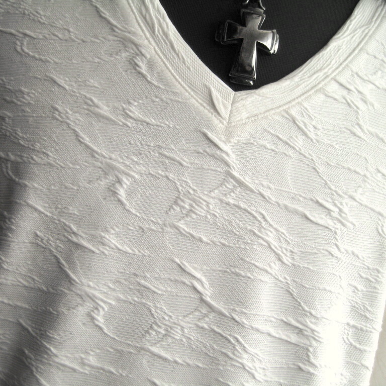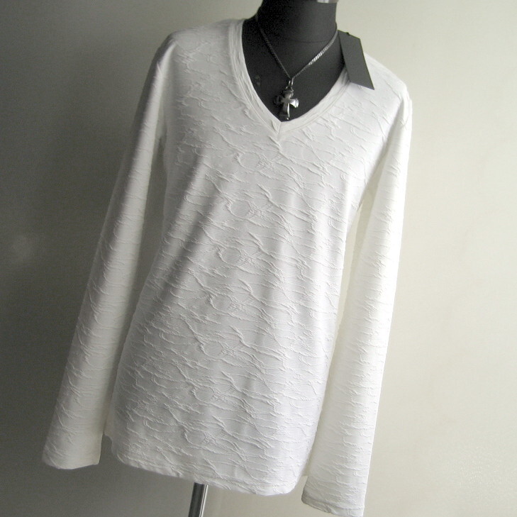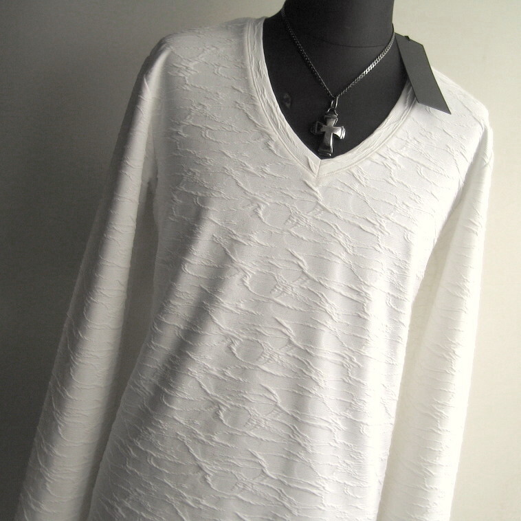 1.3万 新品 L トルネードマートふくれオプティカルジャカードVネックカットソー長袖 ホワイト 送料無料 サンプル 669
