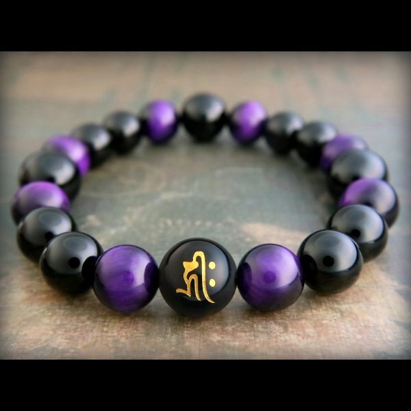 ◆良縁◆恋愛運・勝運・金運 蓮華王 千手観音 子年守護 紫虎目◆5m2035g1