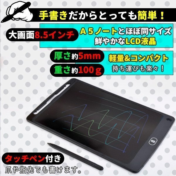 8.5インチ 電子メモパッド メモ帳 LCD液晶 電子メモ帳 ペン付 誤消去防止機能付 ロック 繰り返し使える お絵描き 落書き 伝言板