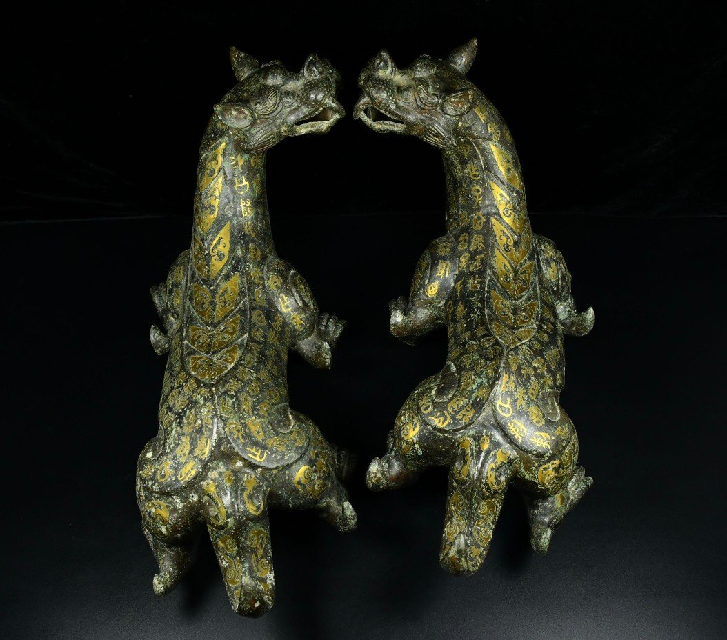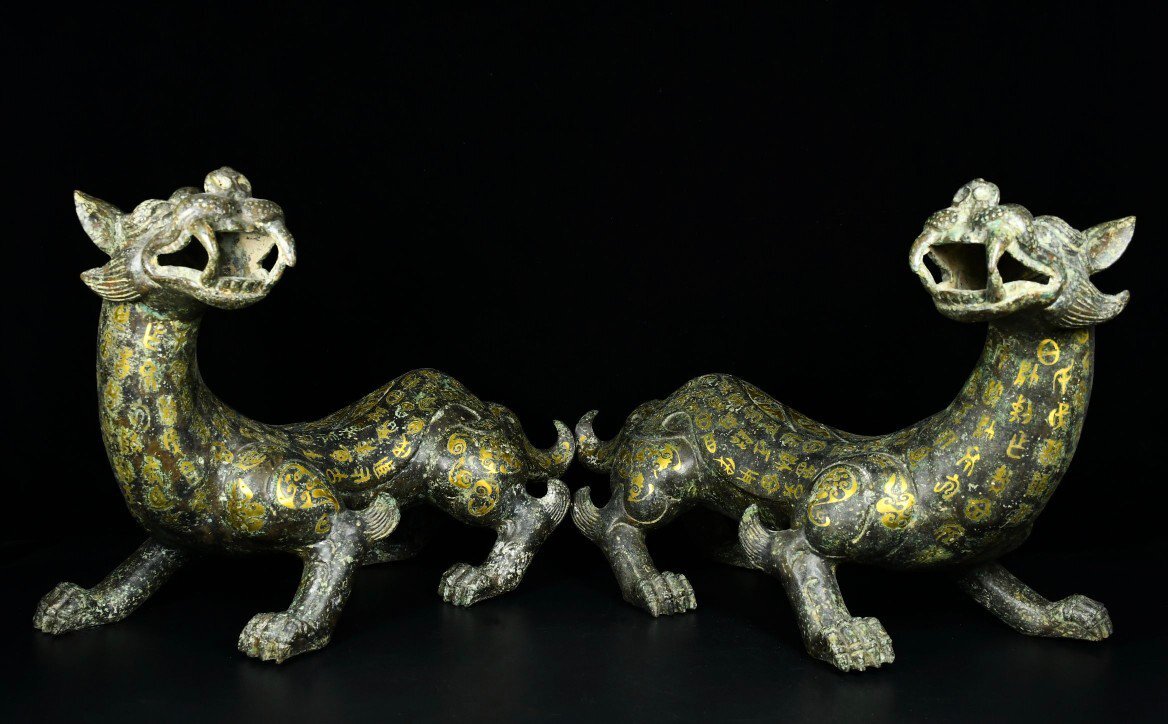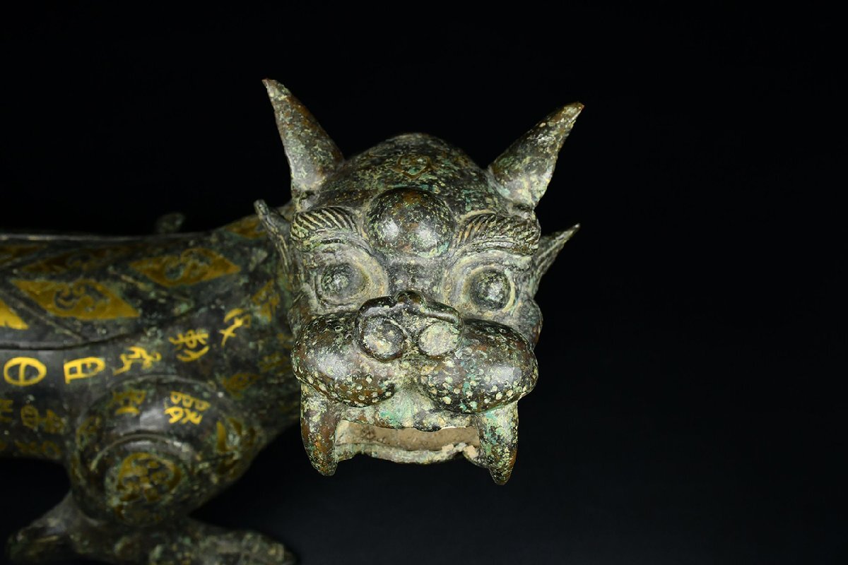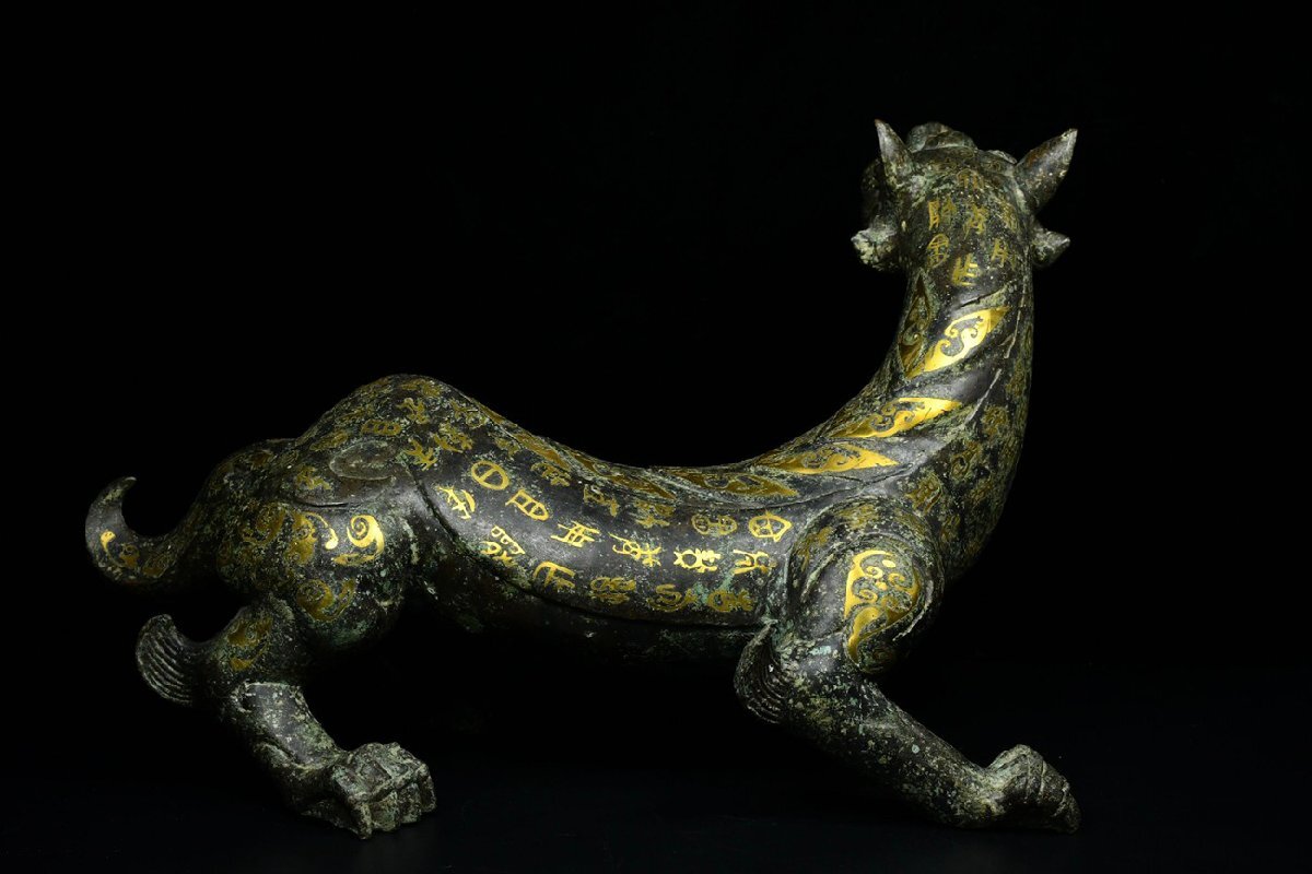 【安】戦国時代 青銅器 錯金 瑞獣置物一対 中国古美術 古擺件 古董品 古美味 骨董品 332 サイズ(約寸) |