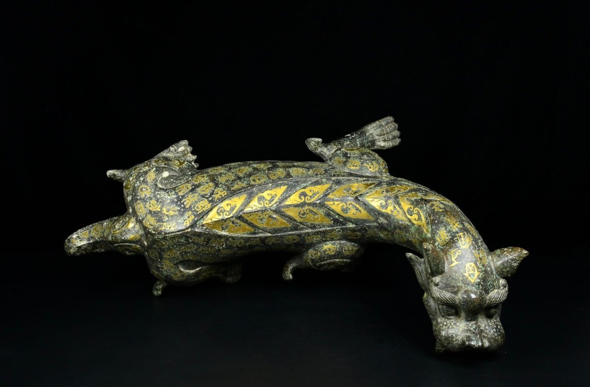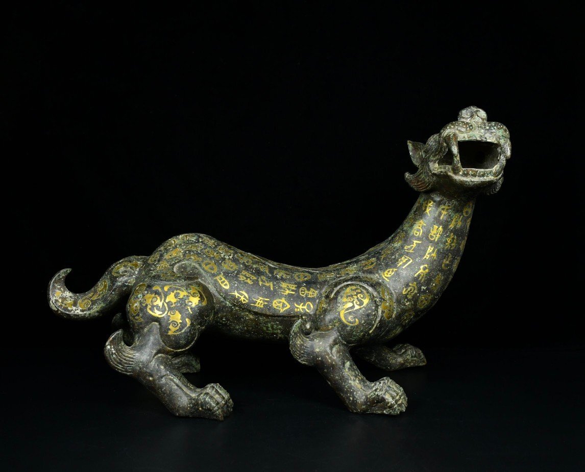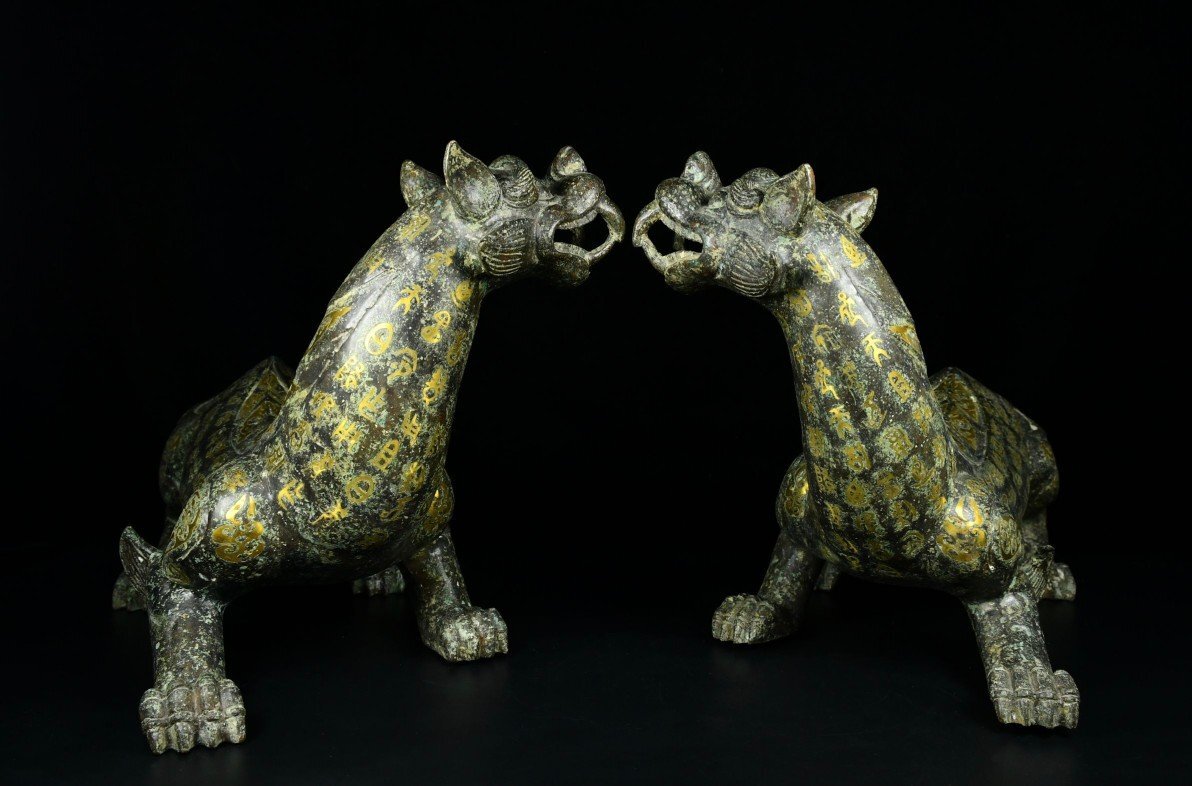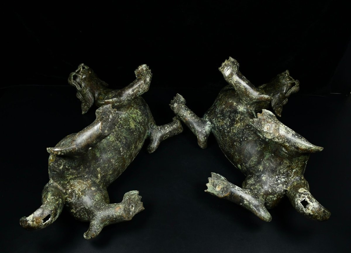 【安】戦国時代 青銅器 錯金 瑞獣置物一対 中国古美術 古擺件 古董品 古美味 骨董品 332 サイズ(約寸) |