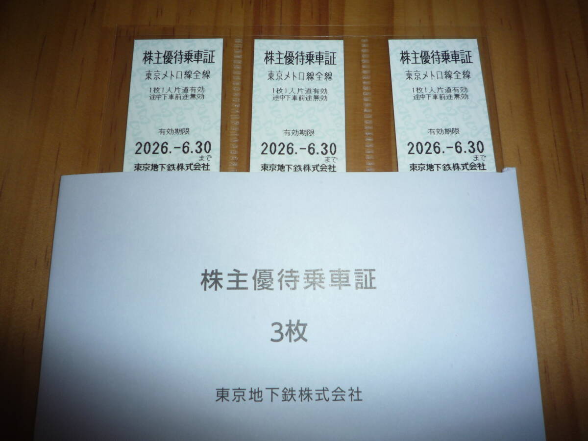 東京地下鉄株式会社 東京メトロ 株主優待乗車証 3枚