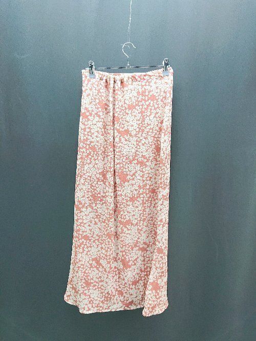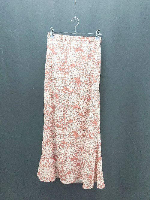 ◇ Chico チコ 花柄 裏地 サイドジップ ウエストゴム シンプル ロング丈 フレア スカート サイズF オレンジ系 レディース E