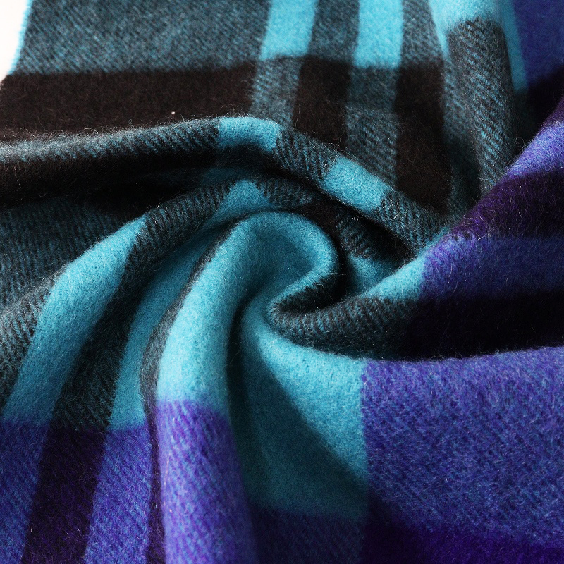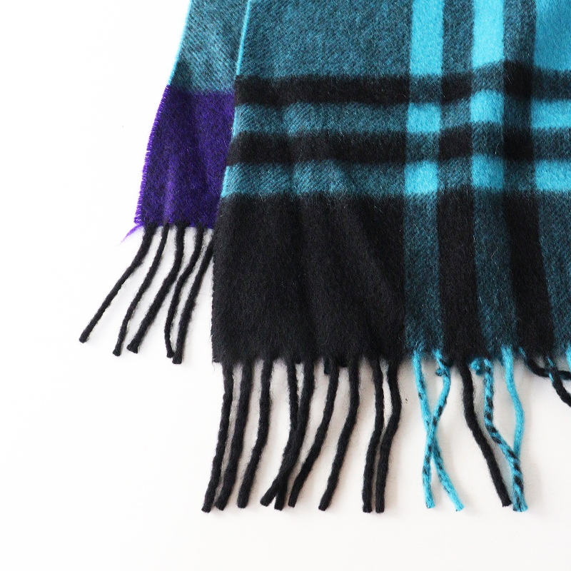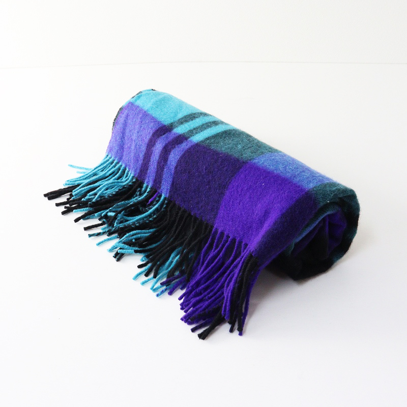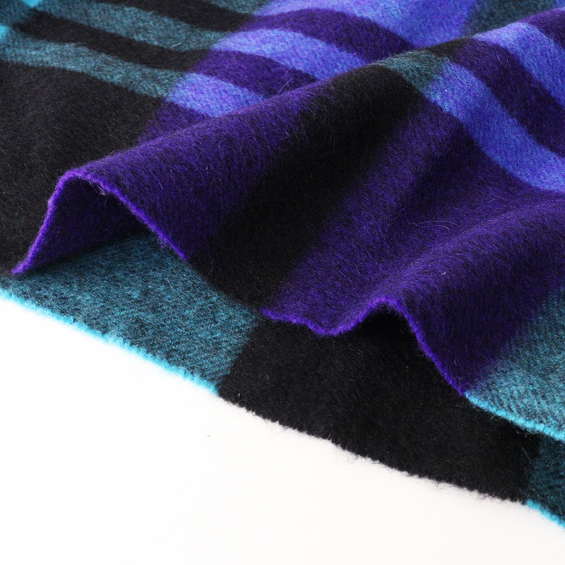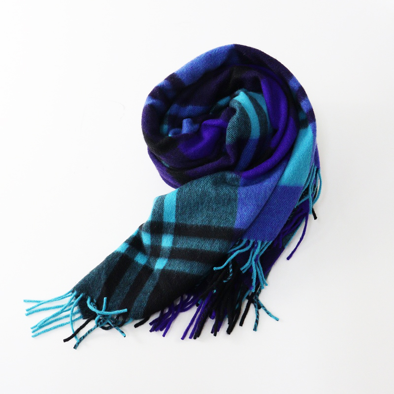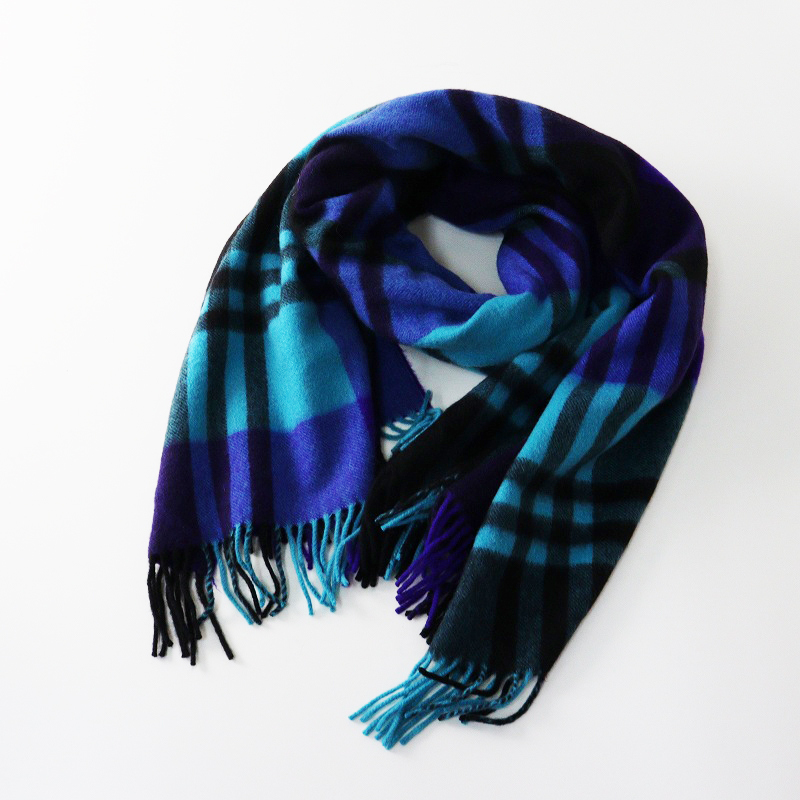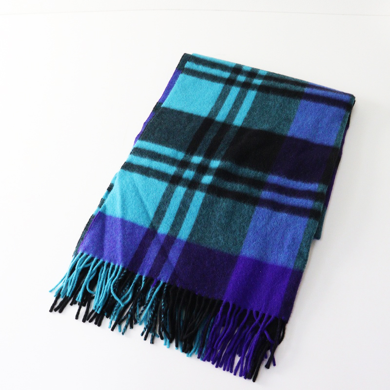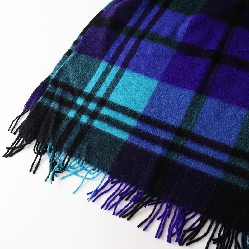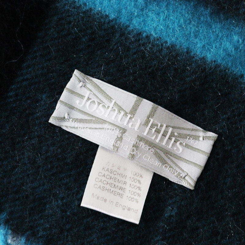 美品 ジョシュアエリス Joshua Ellis タータンチェック 大判 カシミヤストール/ブルー系 ショール フリンジ 英国製【2400014532272】