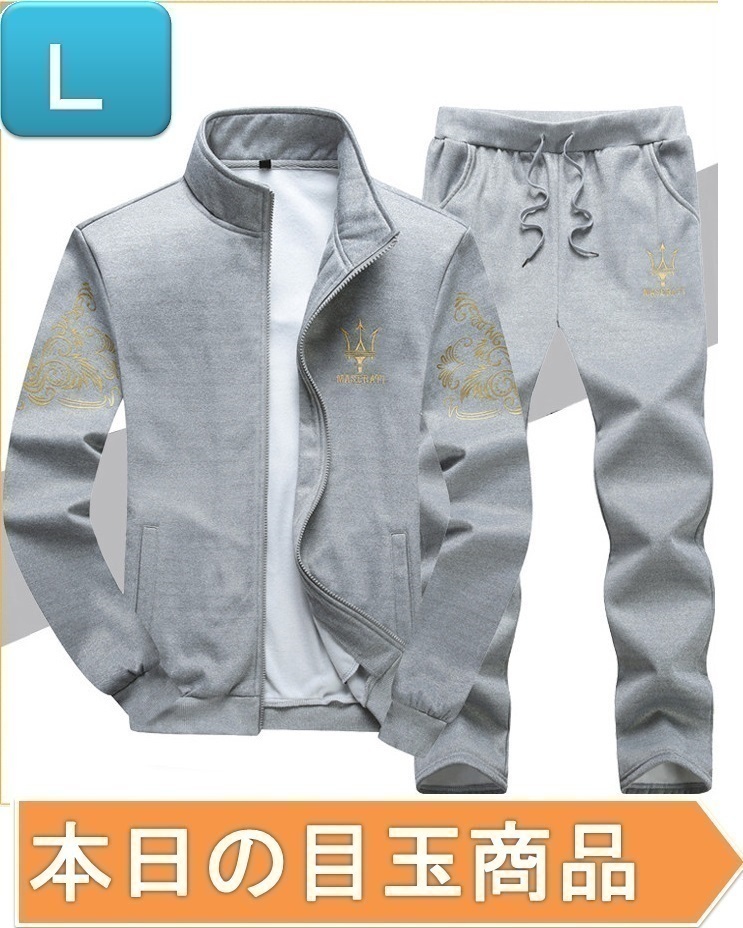 【今日の目玉】メンズセットアップ 上下セット ☆196 グレー Lサイズ ジャージ スウェット お兄系 部屋着 おしゃれ