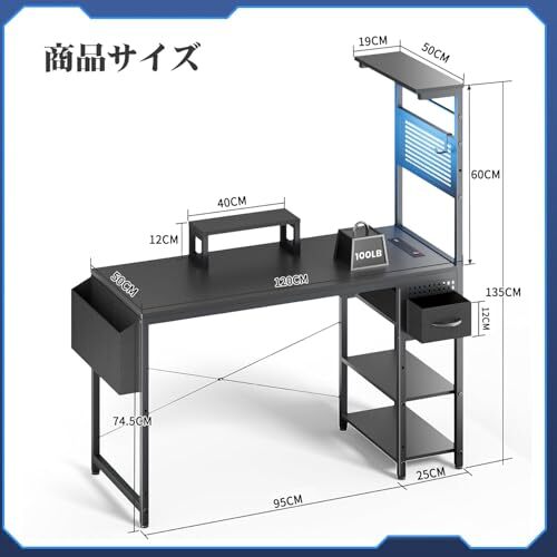 【製品仕様】※サイズ:約120(幅)*75(天板高さ)/135(棚高さ)*50(奥行き)cm。※本体重量:約16.8KG。※お客様組み立て品です。※組み立てにより、多少の誤差があります。予めご了承ください。