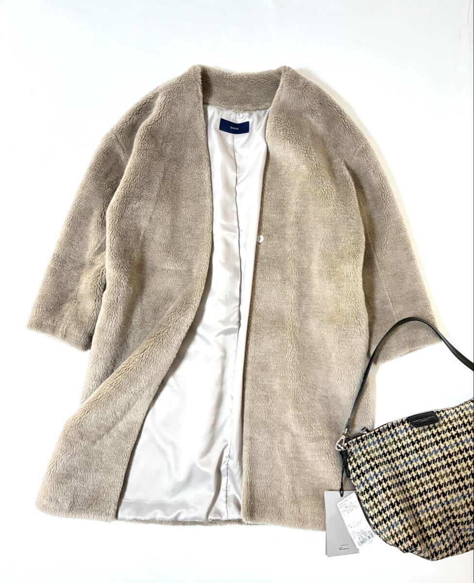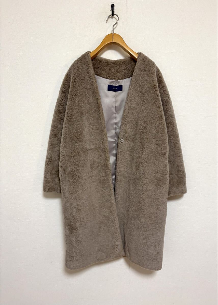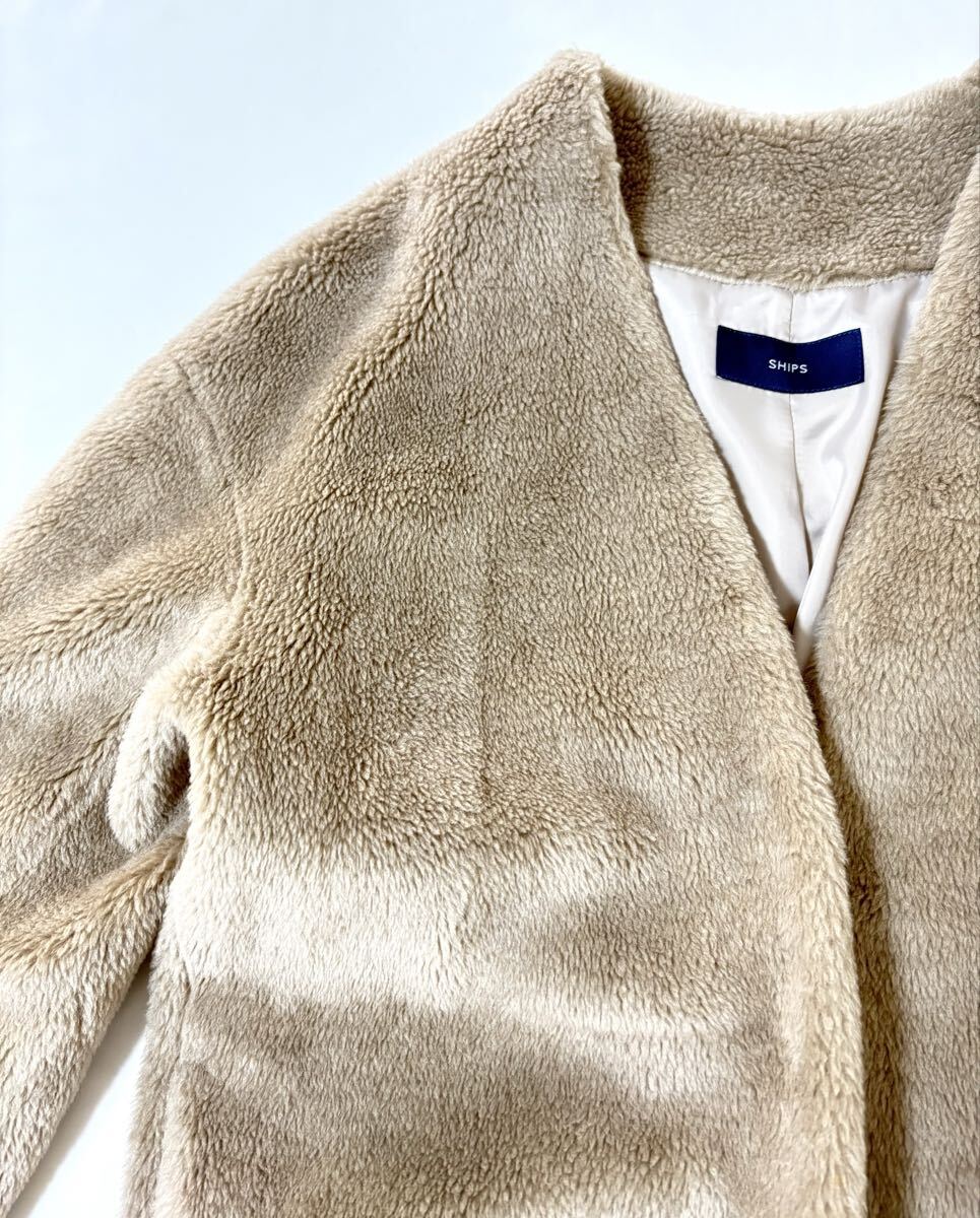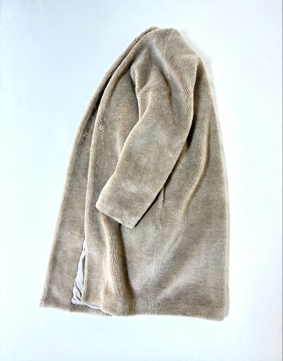 「シップス」のコートです。サイズ・・・フリー(身幅約58cm、着丈約96cm)。素材・・・表地・基布・ポリエステル100%、ボア・アクリル70%、ウール30%。裏地・ポリエステル100%。カラー・・・ベージュ。定価・・・23000円。ふっくらとしたかわいいボアコートです。ゆとりのあるサイズ感で着まわしやすく、程よい丈でインナーやボトムを選ばずに着まわしやすいです。数年前に購入し、何度か使用しました。目立つダメージはないですが、あくまでユーズドですので、神経質な方はご遠慮ください。よろしくお願いいたします。