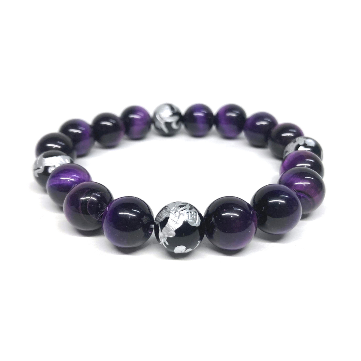 10mm 四神獣銀彫オニキス×パープルタイガーアイ パワーストーン ブレスレット天然石 運気上昇 開運 金運 青龍 白虎 玄武 朱雀 ☆