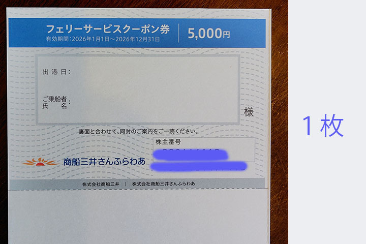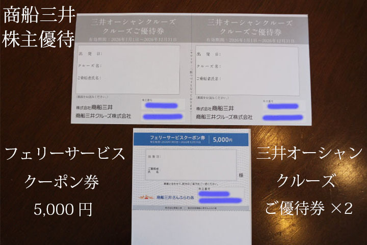 匿名配送 株主優待券 クルーズご優待券 & フェリーサービスクーポン券 豪華3点セット 5,000円分+割引 商船三井 割引券 2026年12月31日まで