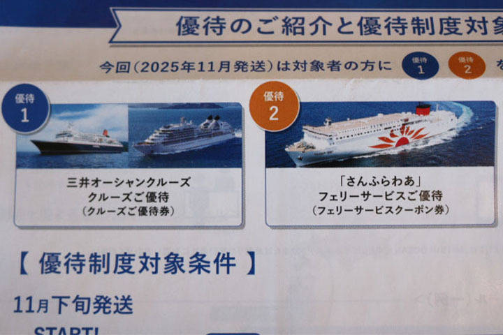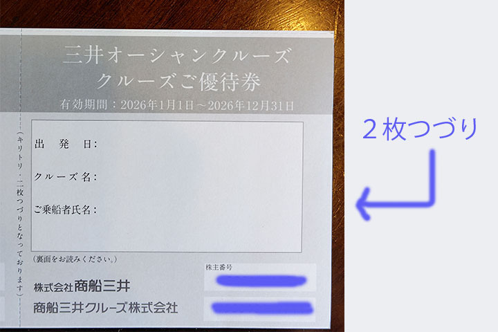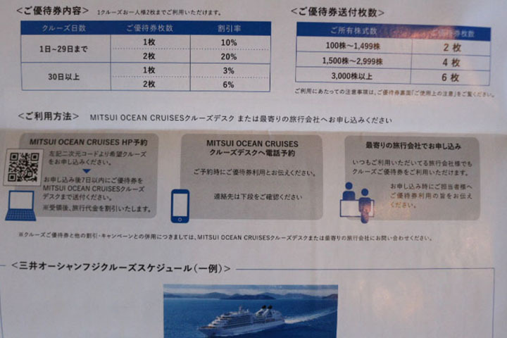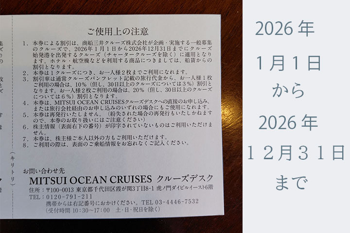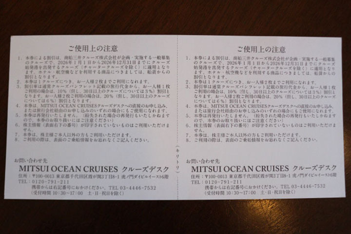 特典2: 三井オーシャンクルーズ クルーズご優待券 (割引券) ×2枚