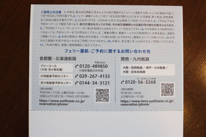 特典1: さんふらわあ フェリーサービスクーポン券 (5,000円分) ×1枚
