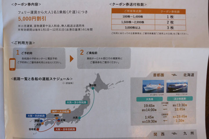 (クルーズ割引券:10%, 20%, 3%, 6% / フェリー割引券:5,000円分)