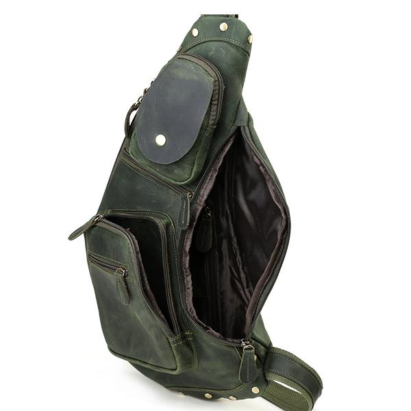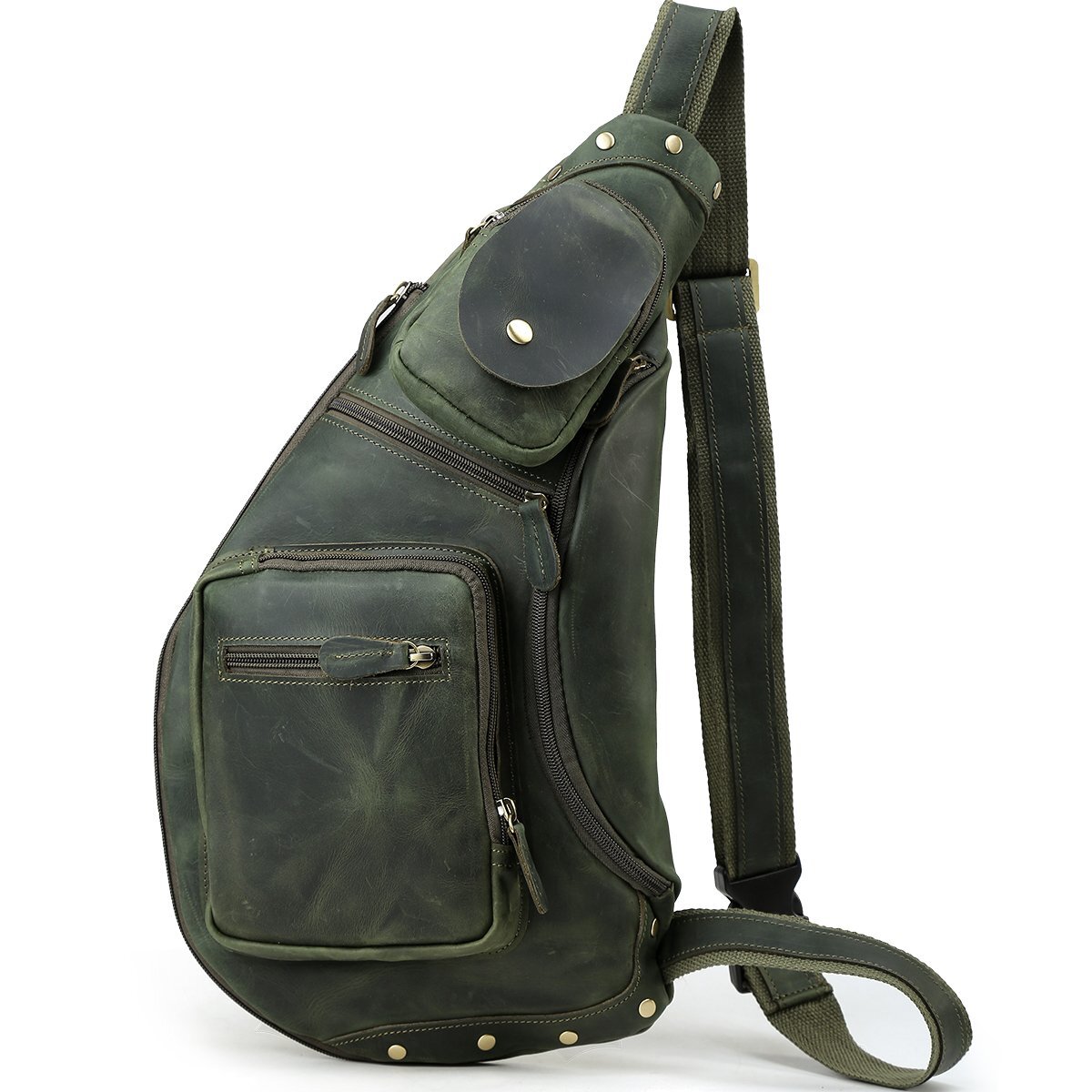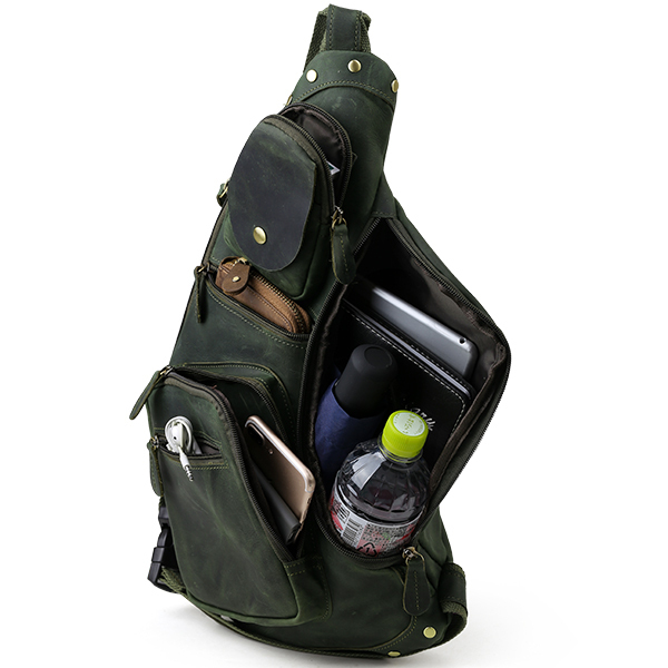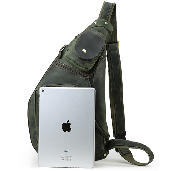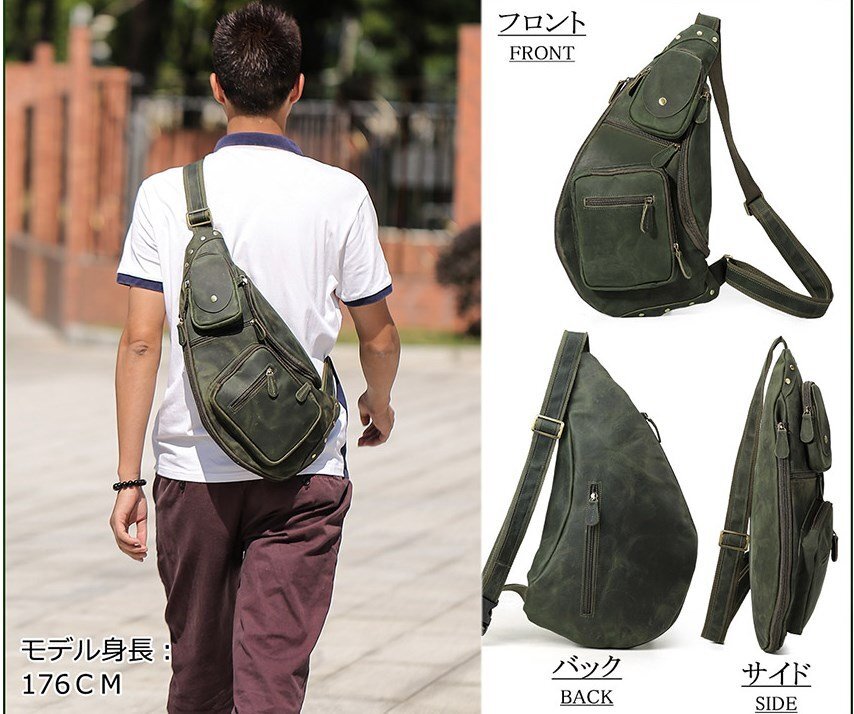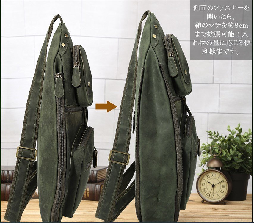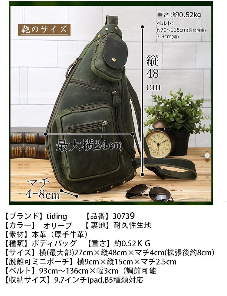TIDING 本革 ワンショルダーバッグ メンズ ボディバッグ 革 厚手牛革 プルアップレザー マチ拡張 iPad対応 経年変化 オリーブ色 潮牛
