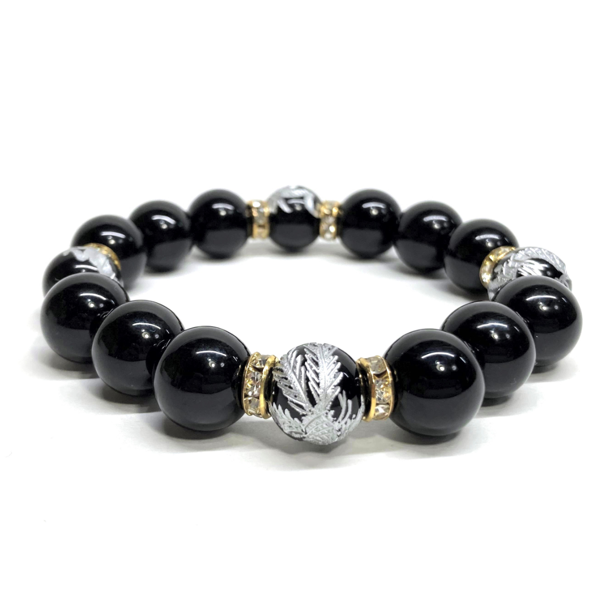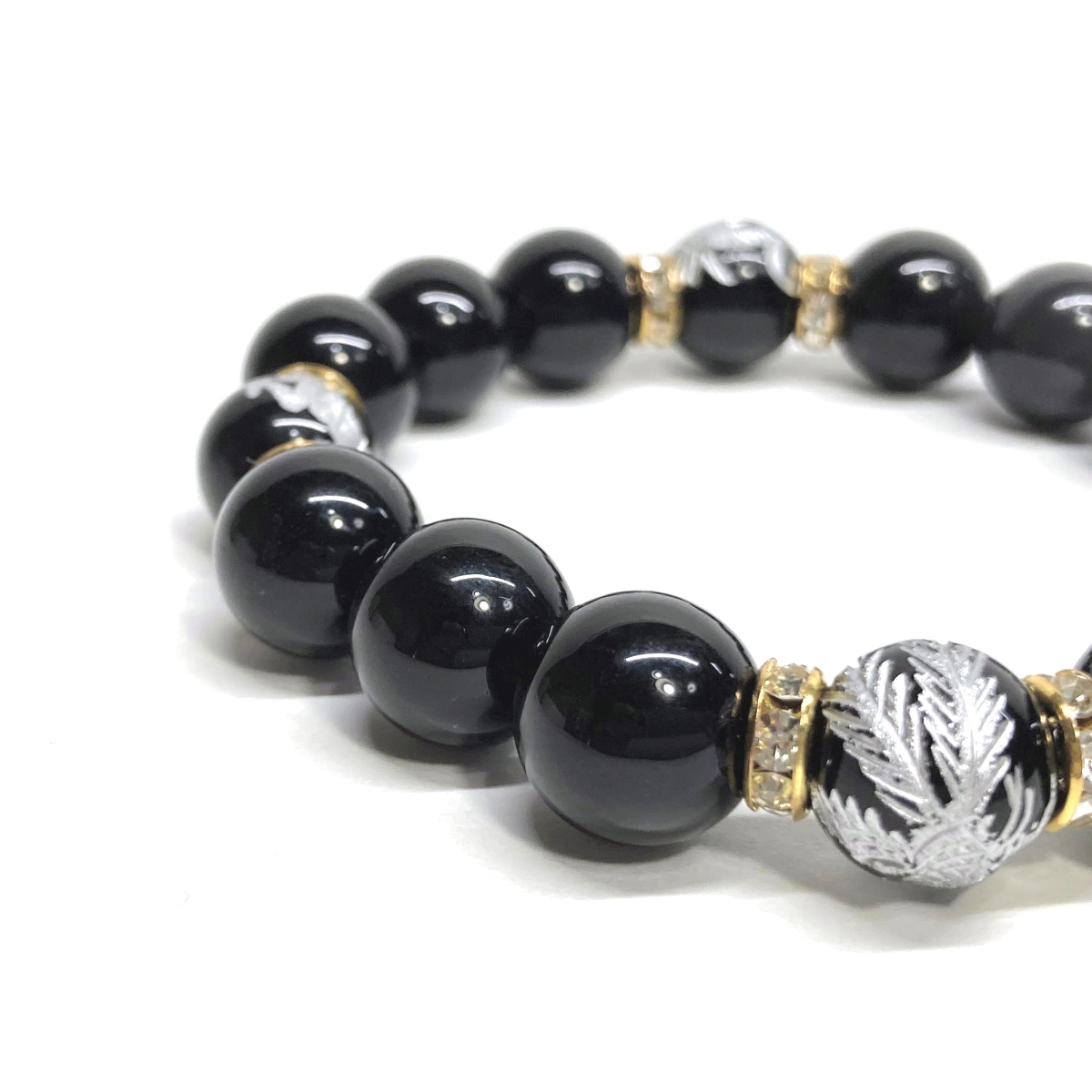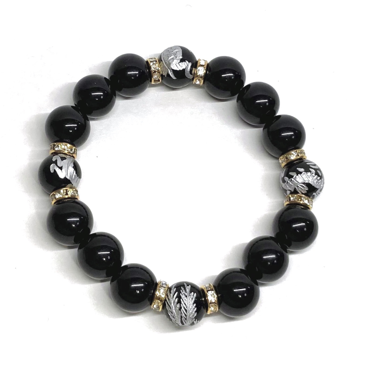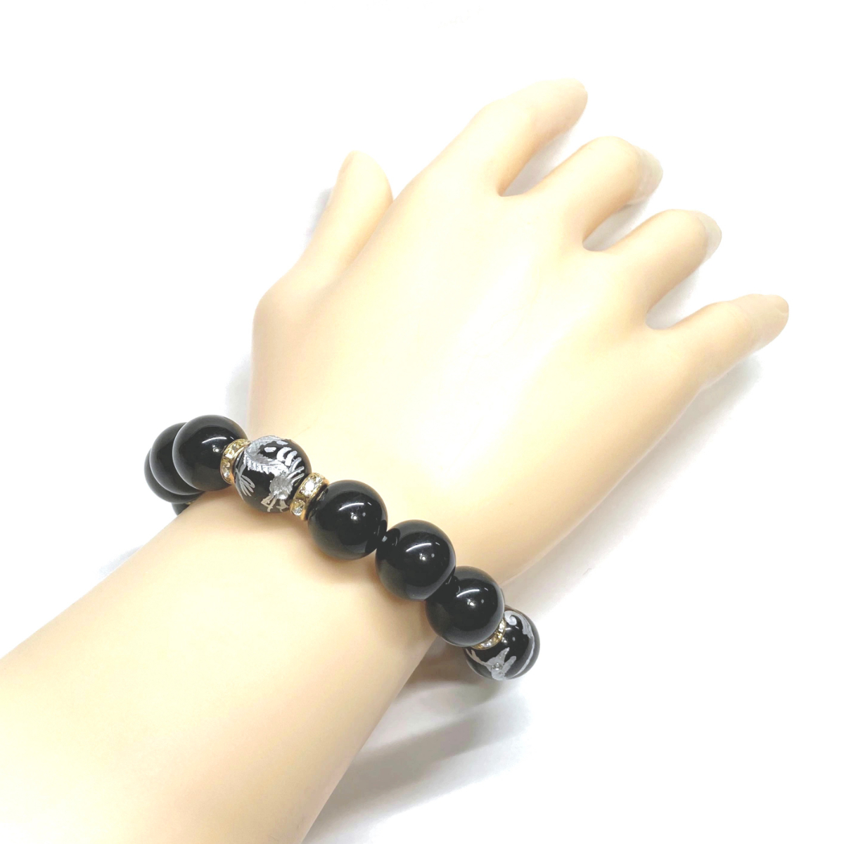 こちらは、四神獣銀彫オニキとモリオンを組み合わせたパワーストーンブレスレットです。四神獣は、中国の伝説で4つの方向(東西南北)を守護する神聖な神。四神獣、厄災から身を守り、多くの運気を呼び込むと言われております。石大きさは程よくインパクトのある12mm玉で内周 約17cmです。 数に限りがございますので気になる方はお早めにどうぞ。