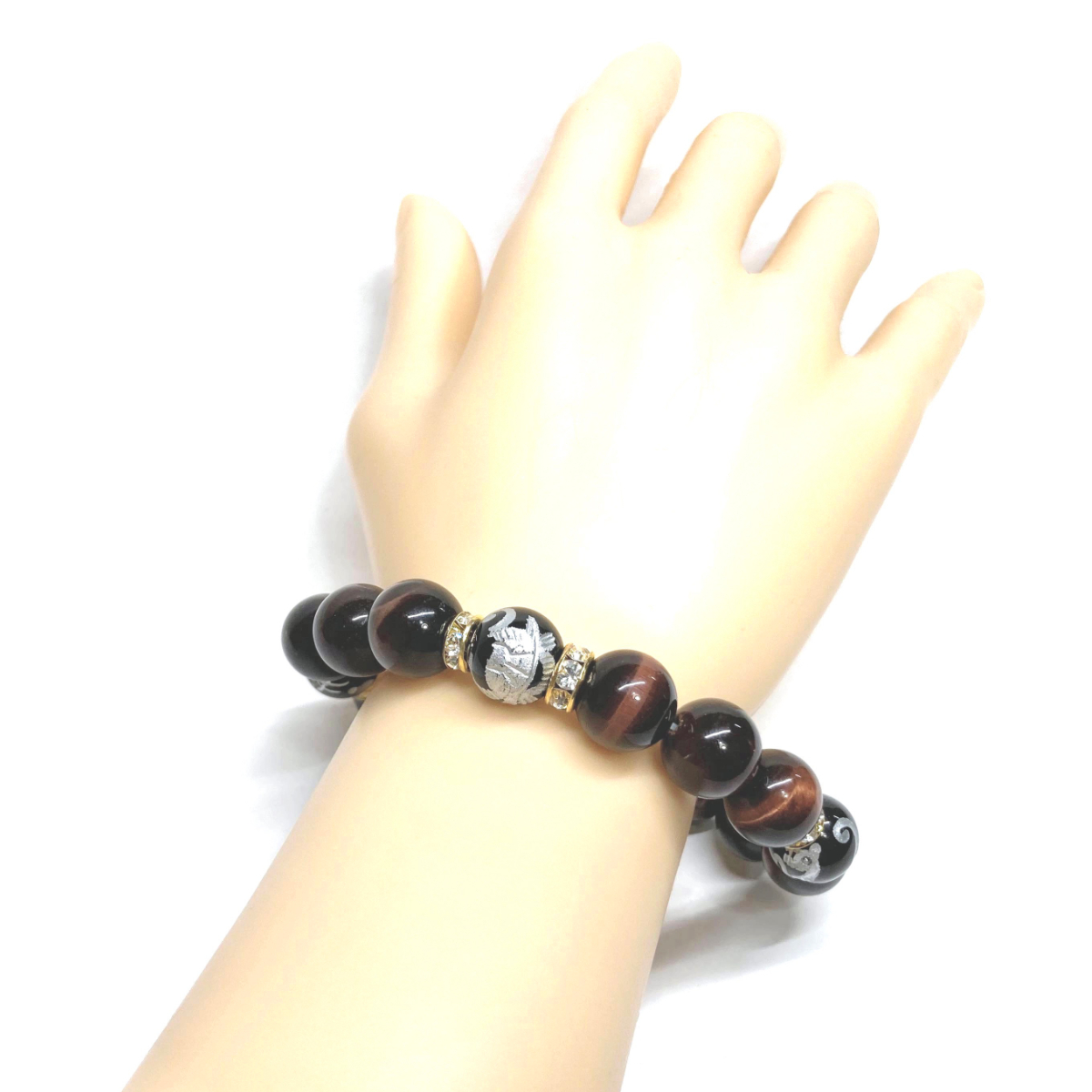 こちらは、四神獣銀彫オニキとレッドタイガーアイを組み合わせたパワーストーンブレスレットです。四神獣は、中国の伝説で4つの方向(東西南北)を守護する神聖な神。四神獣、厄災から身を守り、多くの運気を呼び込むと言われております。石大きさは程よくインパクトのある12mm玉で内周 約17cmです。 数に限りがございますので気になる方はお早めにどうぞ。