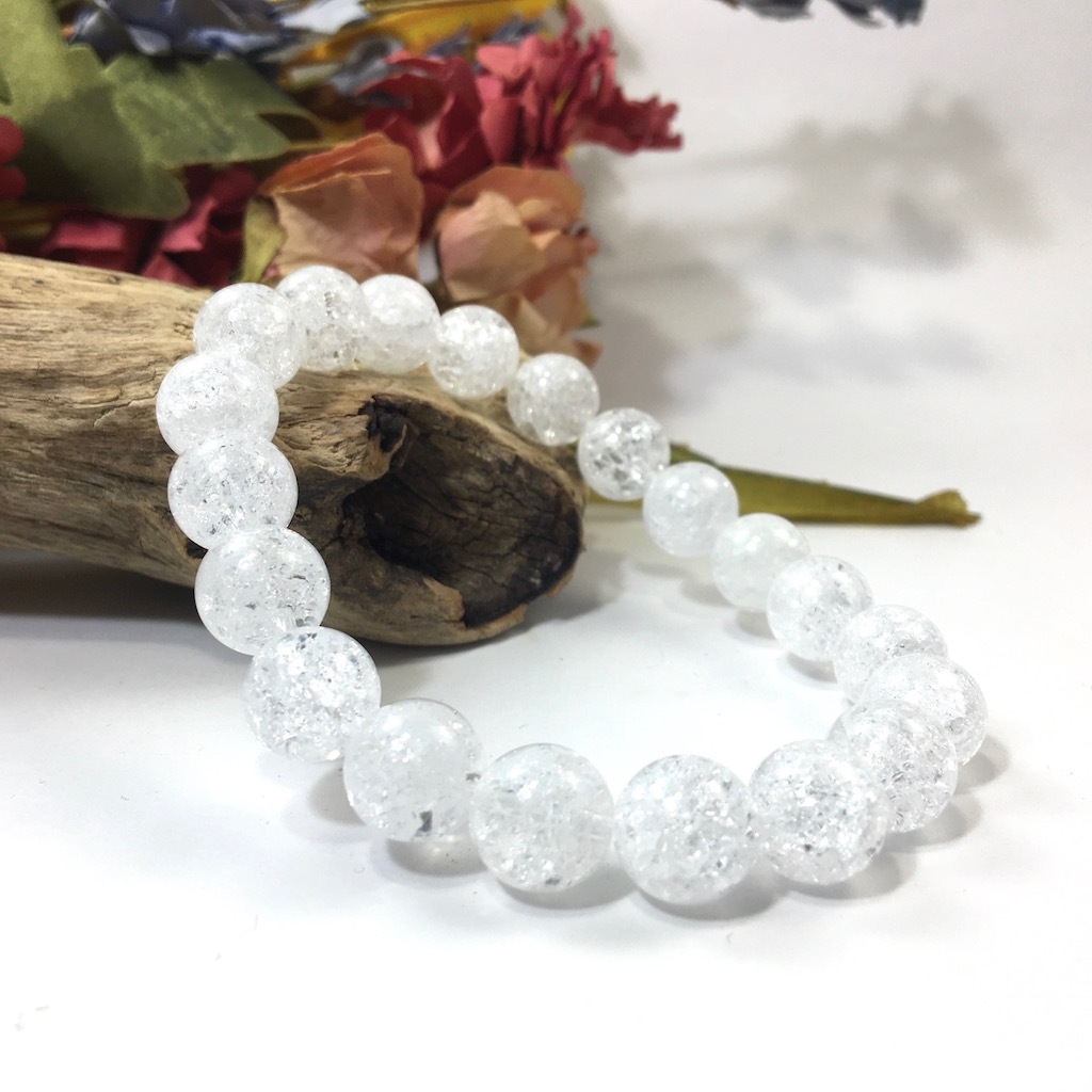クラック水晶 パワーストーン ブレスレット 10mm 天然石ブレス シンプル 開運 浄化 数珠ブレス メンズ・レディース ☆