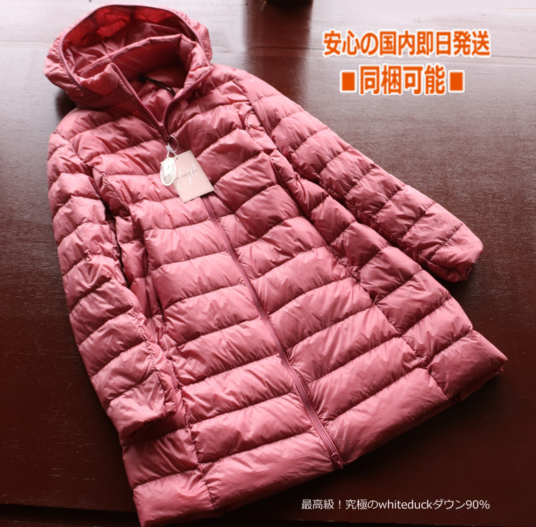 新品■LAUREN GIL③ピンク レディース ミドル丈 ウルトラ ライト ダウンコート XL ◆春まで着れる ultraライト ダウン フード脱着 超軽量