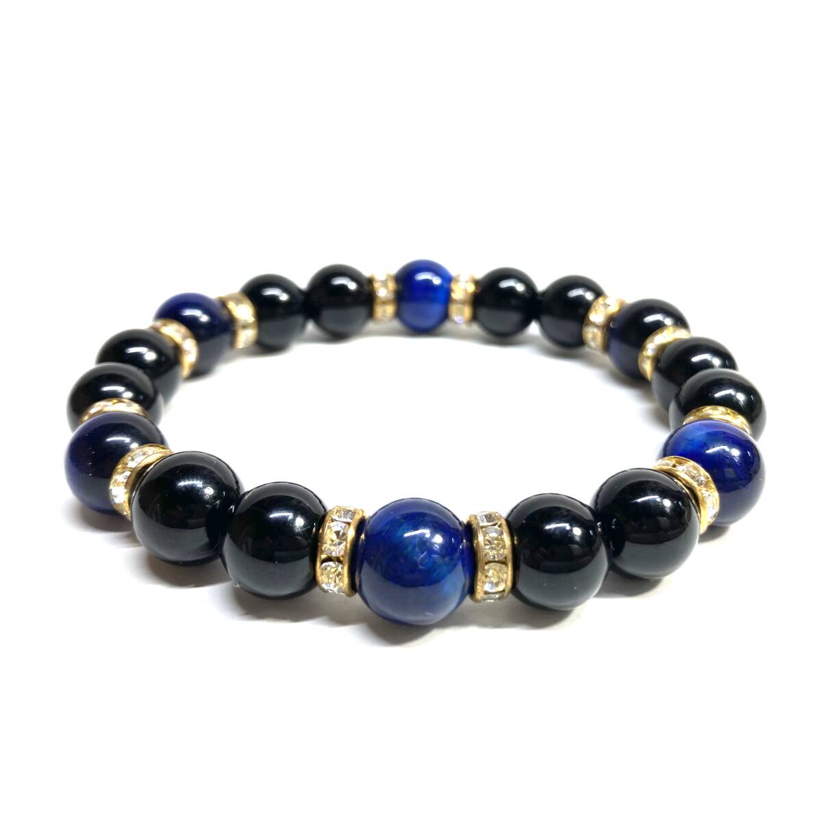 モリオン&ブルータイガーアイ パワーストーン ブレスレット 天然石ブレス (ゴールド) 10mm メンズ・レディース 厄除け 金運 ☆