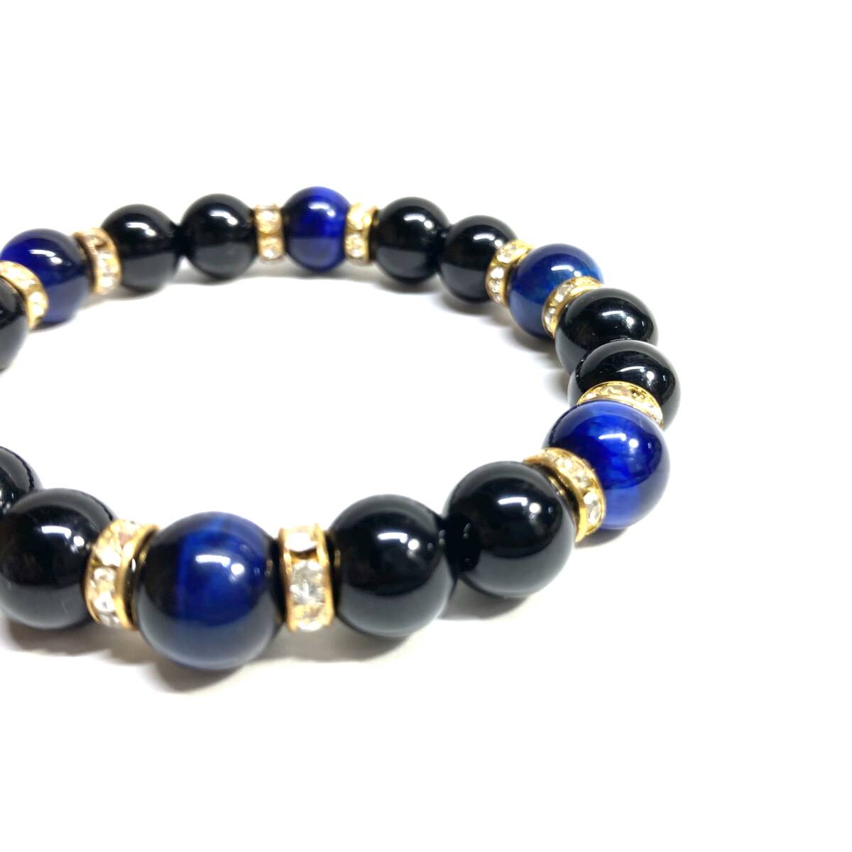 こちらは、モリオンとブルータイガーアイを組み合わせたパワーストーンブレスレットです。間にはロンデルを挟み高級感あるデザインに仕上げております。石大きさは腕にも馴染みやすいように10mm玉で内径約18cm(伸可能)です。(サイズ変更の場合は取引ナビにてご連絡をお願いします。) 数に限りがございますので気になる方はお早めにどうぞ。