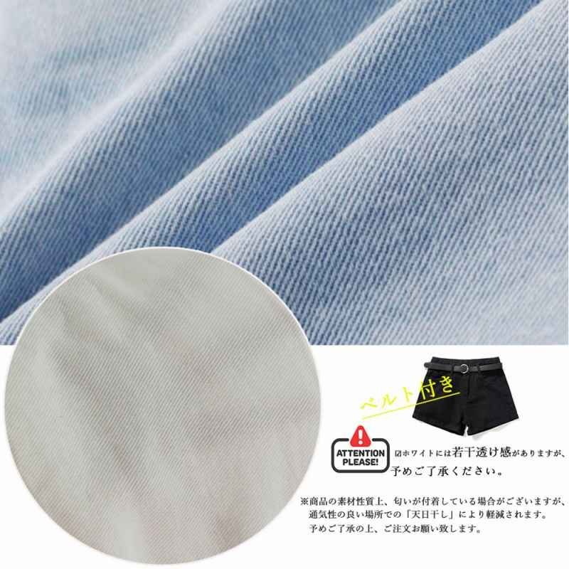 ハイウエスト デニムショートパンツ レディース 夏 ベルト付き ショーパン XL ホワイト