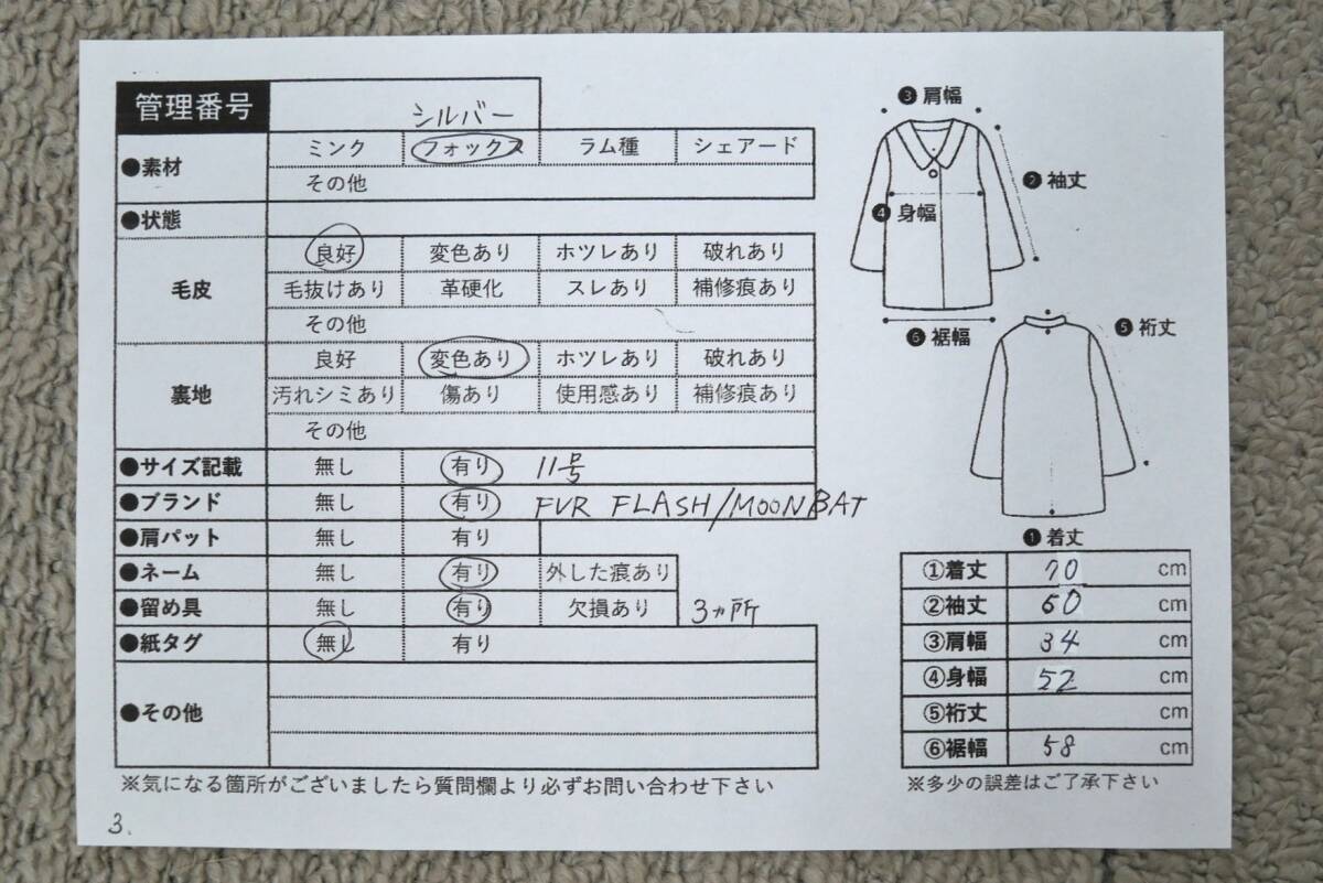 ☆シルバーフォックス☆ハーフコート☆着丈70cm☆FUR FLASH/MOONBAT☆
