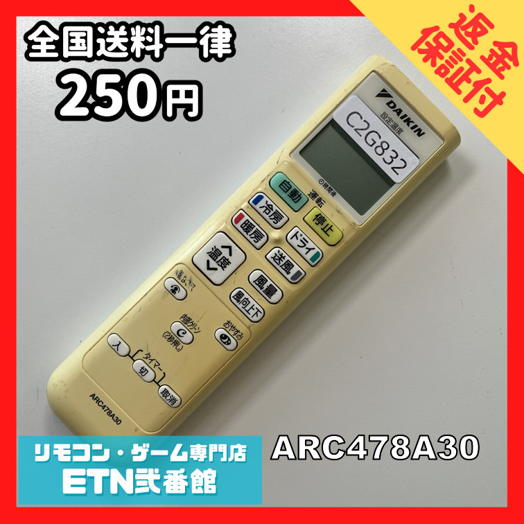 C2G832 【送料250円】エアコン リモコン / Daikin ダイキン ARC478A30 冷房 暖房 動作確認済み★即発送★