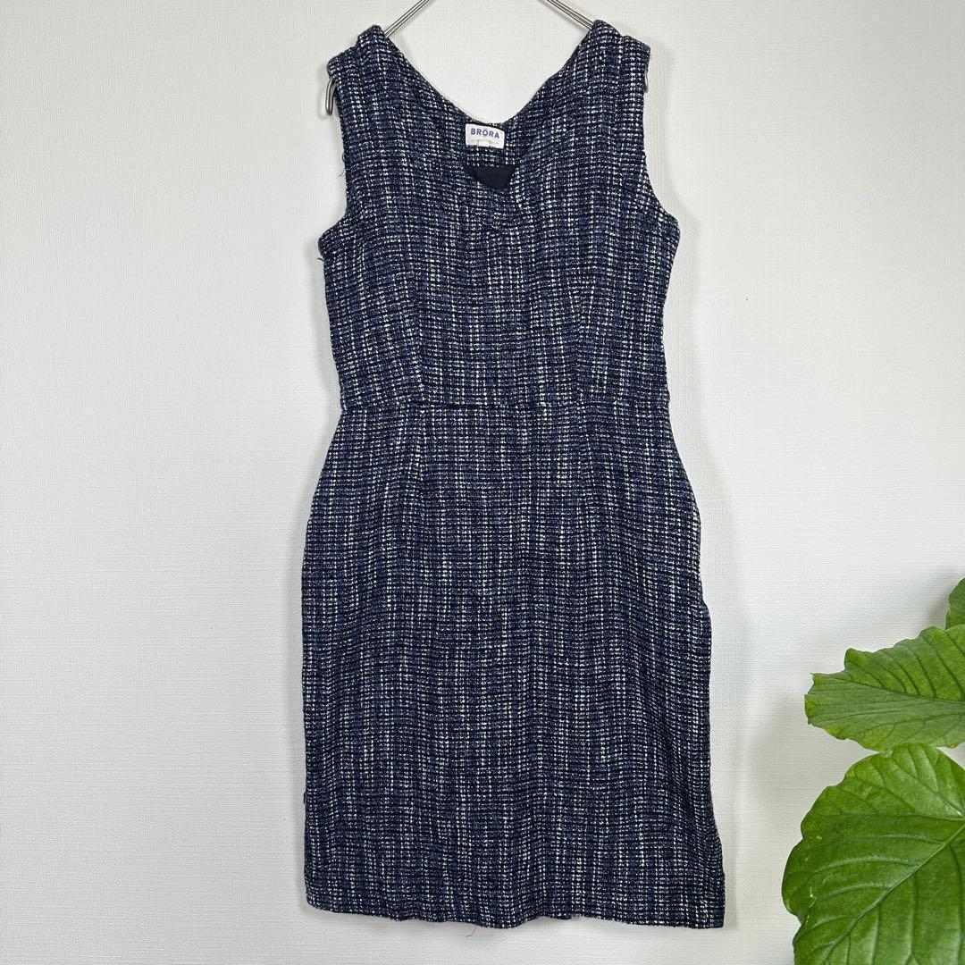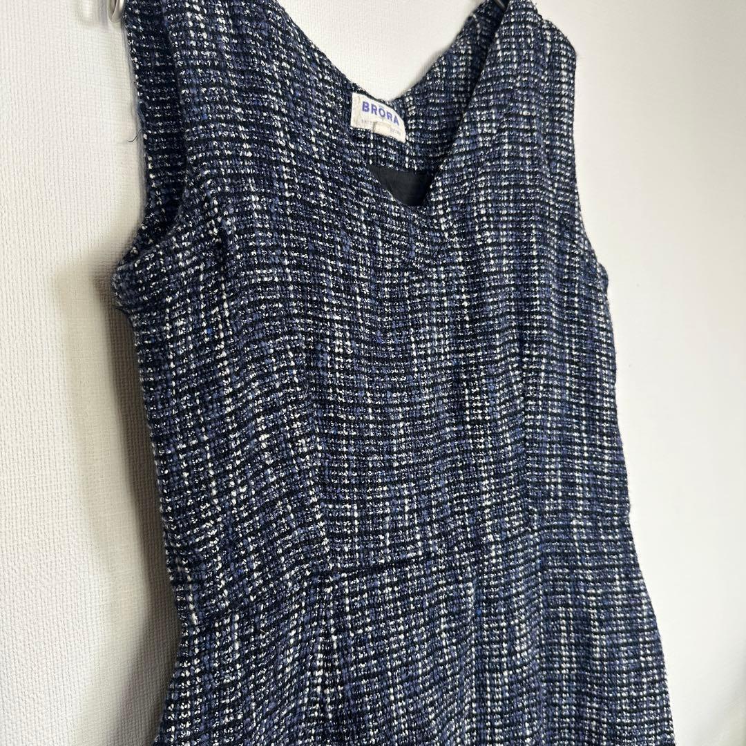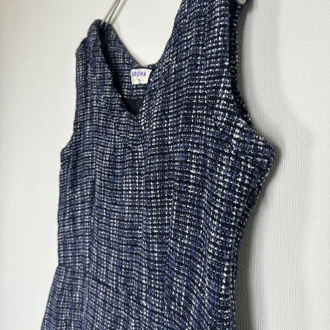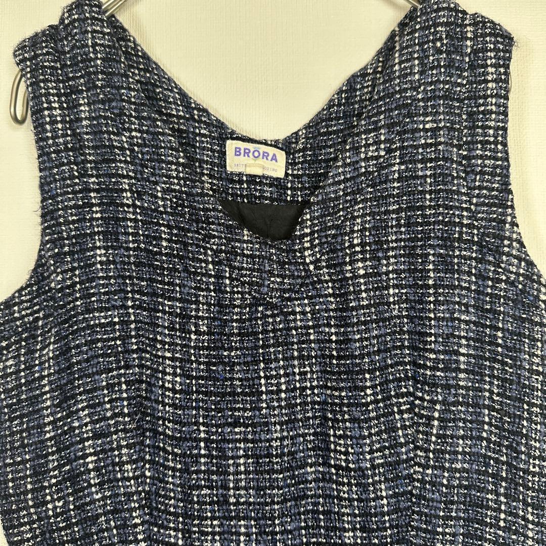 BRORA リントン社ツイード使用 ノースリーブワンピース 10号 ネイビー AABCC9