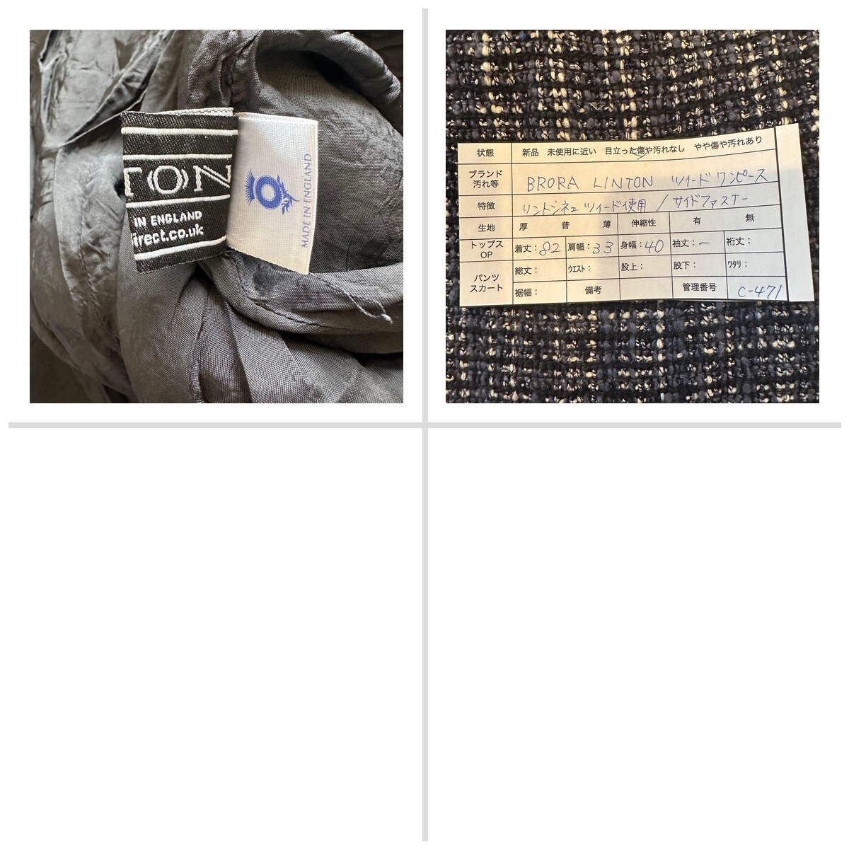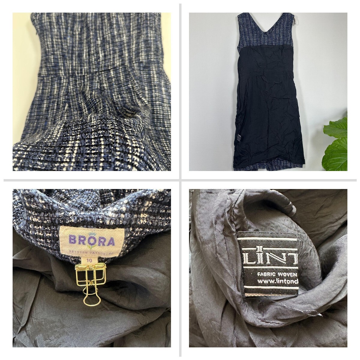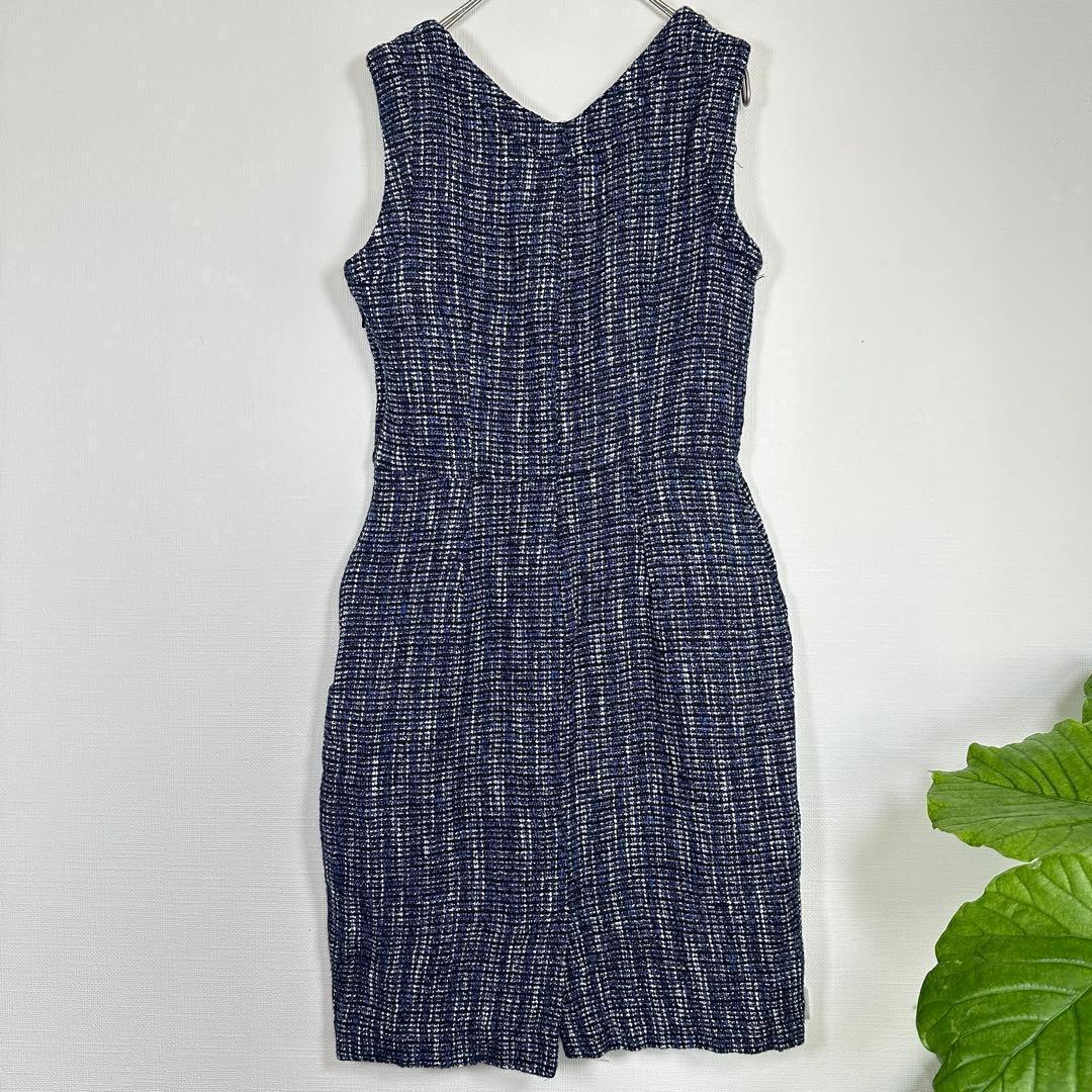 BRORA リントン社ツイード使用 ノースリーブワンピース 10号 ネイビー AABCC9