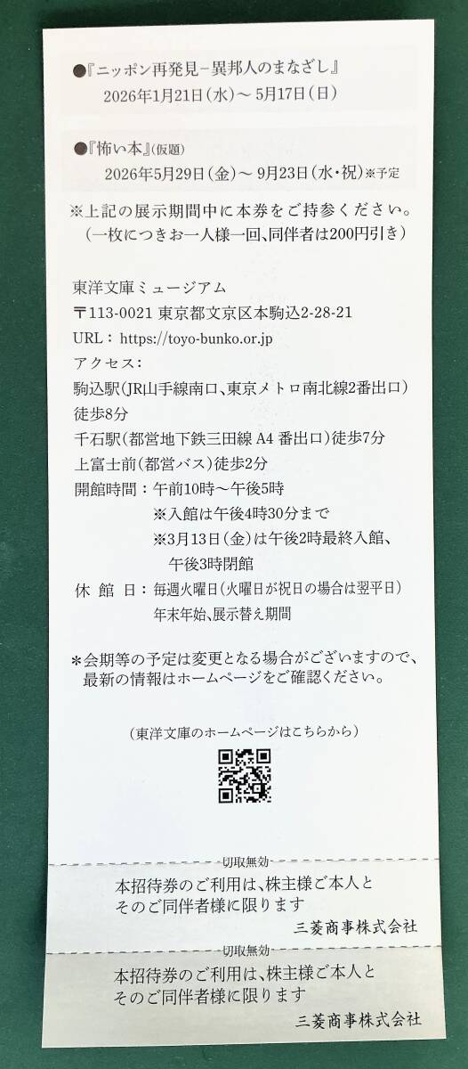 東洋文庫ミュージアム 招待券 有効期限2026年6月29日