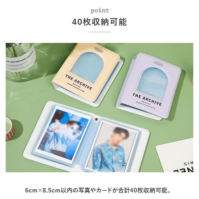| 商品説明 | ・・思い出のチェキ写真を、見やすくまとめておけるアルバム♪ ・表紙のクリア窓デザインがポイント♪内側からお気に入りの写真やカードを入れたりデコレーションすれば、自分だけのオリジナルアルバムに! ・・6cm×8.5cm以内の写真やカードが合計40枚収納可能。 ・持ち運びに便利なコンパクトサイズ。 ・チェキ写真はもちろん、カードやシールを入れてもOK。 |
