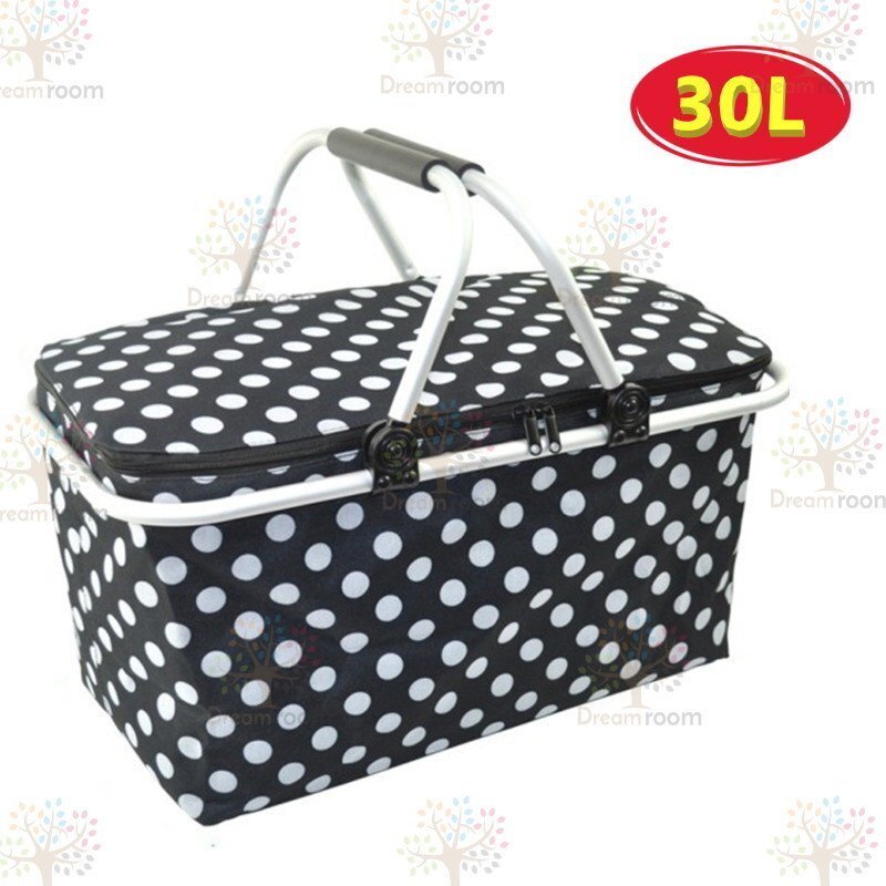 保冷・保温 機能付き 30L 折りたたみ式 エコバッグ【F-215-08】大容量 バスケット 買い物かご 断熱バッグ屋外 ピクニック
