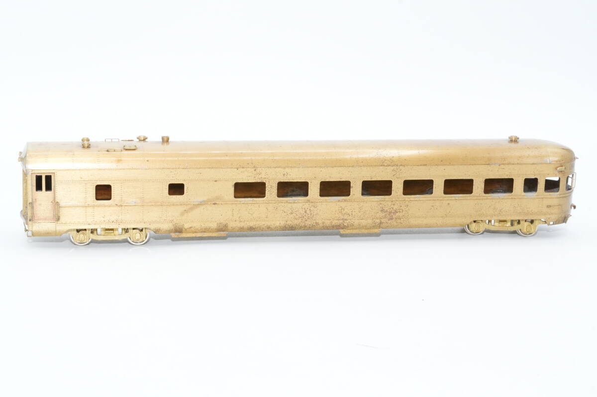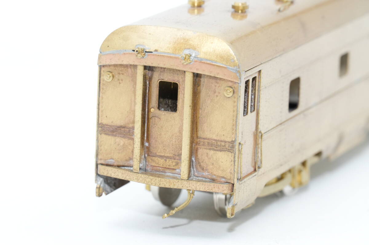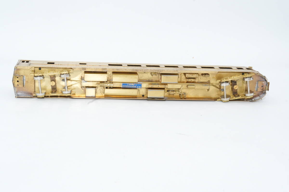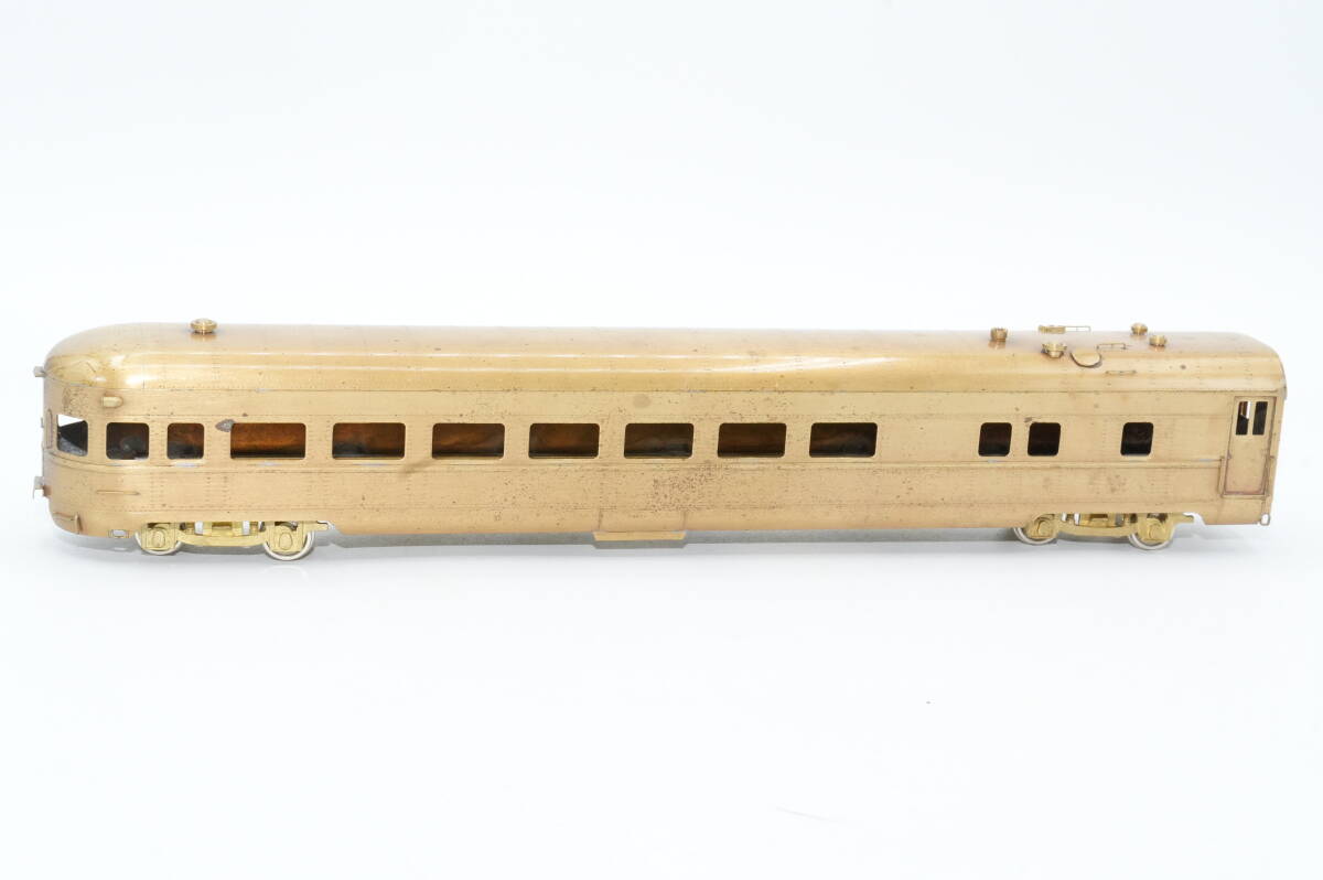 N.J.international製ペンシルバニア鉄道POC70R展望・カフェカーです。シングルウインドウ、アンテナなしバージョンです。1980年代製ですがシングルウインドウタイプとペアウインドウタイプが作り分けられて発売されていたことにちょっと感動します。台車がPRRでは一般的な2D-P5のロスト製ですが、リバロッシなどの塗り替え品ですと台車が気になったりしますがこれで型取りすればかなり実物に近づきます。この車種はコーチヤードのジェファーソニアンに入っていましたが、こちらは8輌セットで$7000と結構な価格でしたのでこの車両を使って同じ編成を作ってみるのも楽しいかと思いました。おそらく真鍮製はこの2社以外からは発売されていないと思いますのでこの機会にいかがですか。生産はクマタですがリベットも美しく、床下もリブがないのが残念ですが主要部品はロスト製です。タンクにはドレインがロストではなくただの真鍮線ではありますがそれらしくついています。内装はありません。元箱もありません。現状品です。写真をよくご覧いただきご検討をお願いいたします。