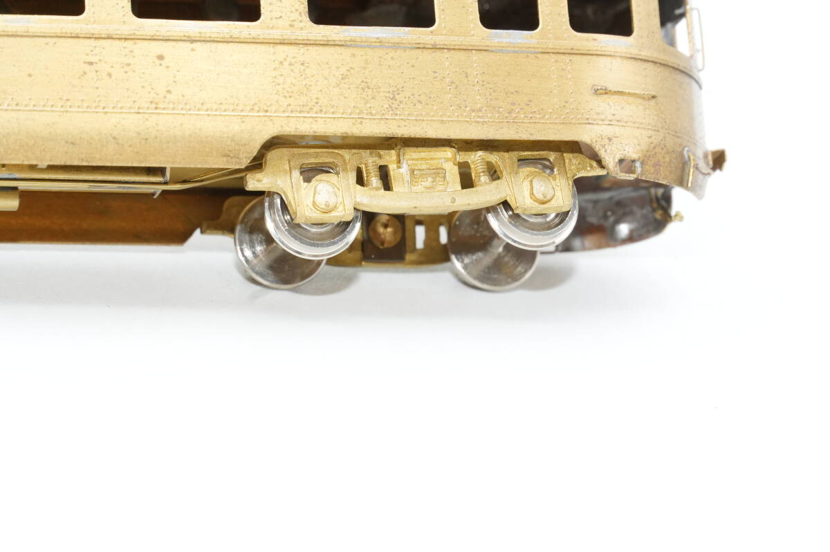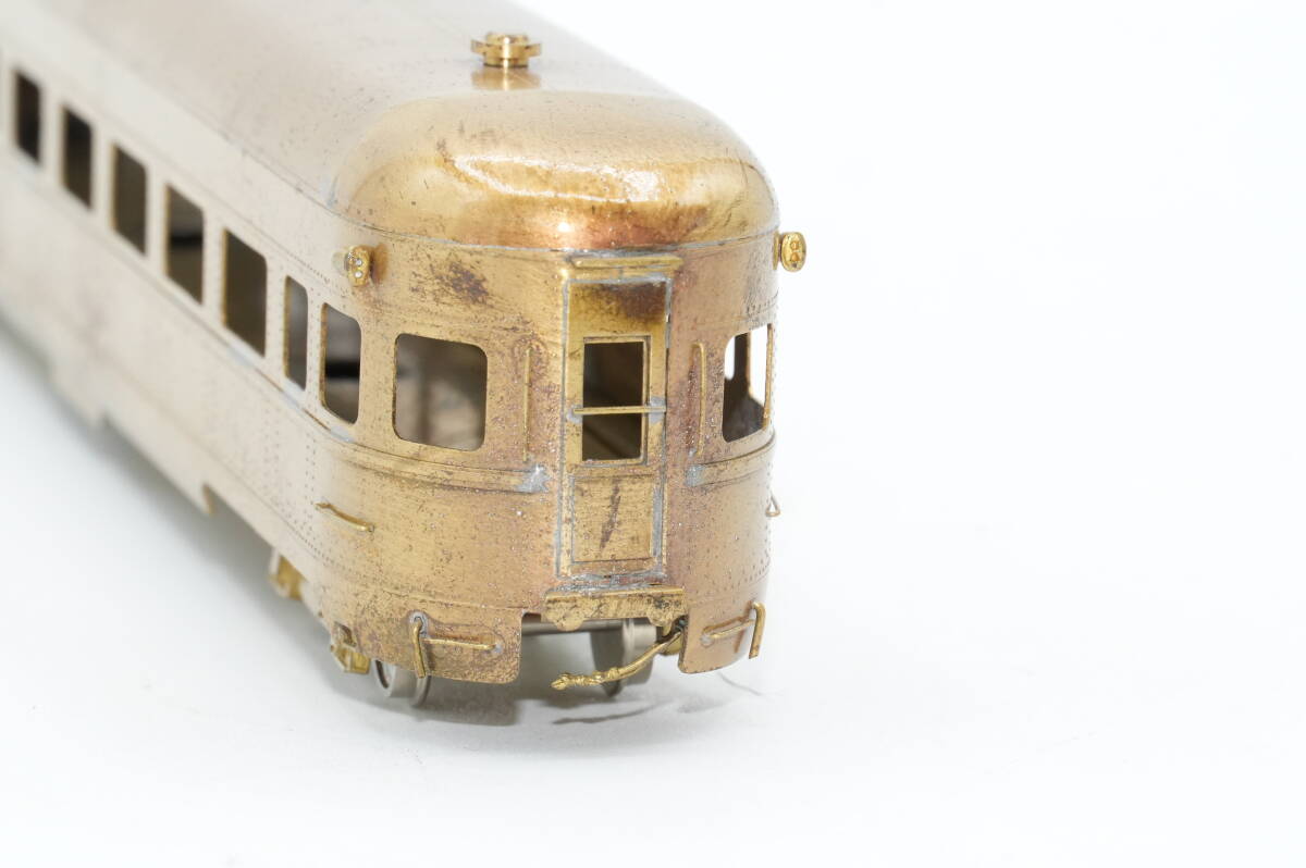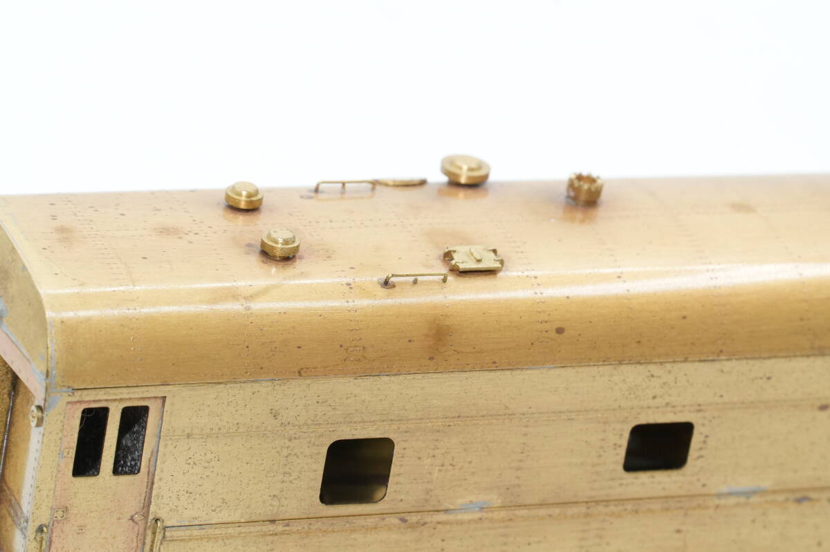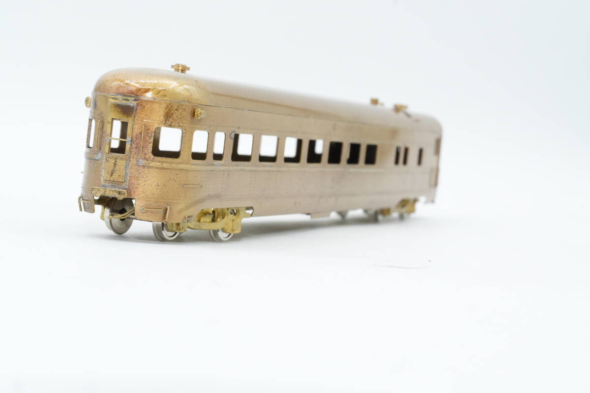N.J.international製ペンシルバニア鉄道POC70R展望・カフェカーです。シングルウインドウ、アンテナなしバージョンです。1980年代製ですがシングルウインドウタイプとペアウインドウタイプが作り分けられて発売されていたことにちょっと感動します。台車がPRRでは一般的な2D-P5のロスト製ですが、リバロッシなどの塗り替え品ですと台車が気になったりしますがこれで型取りすればかなり実物に近づきます。この車種はコーチヤードのジェファーソニアンに入っていましたが、こちらは8輌セットで$7000と結構な価格でしたのでこの車両を使って同じ編成を作ってみるのも楽しいかと思いました。おそらく真鍮製はこの2社以外からは発売されていないと思いますのでこの機会にいかがですか。生産はクマタですがリベットも美しく、床下もリブがないのが残念ですが主要部品はロスト製です。タンクにはドレインがロストではなくただの真鍮線ではありますがそれらしくついています。内装はありません。元箱もありません。現状品です。写真をよくご覧いただきご検討をお願いいたします。