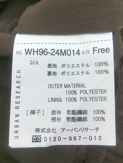 ◇ URBAN RESEARCH アーバンリサーチ ハイウエスト ワイドパンツ サイズ F ブラウン レディース