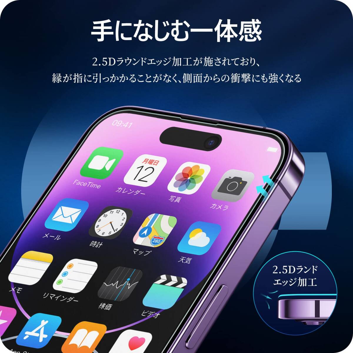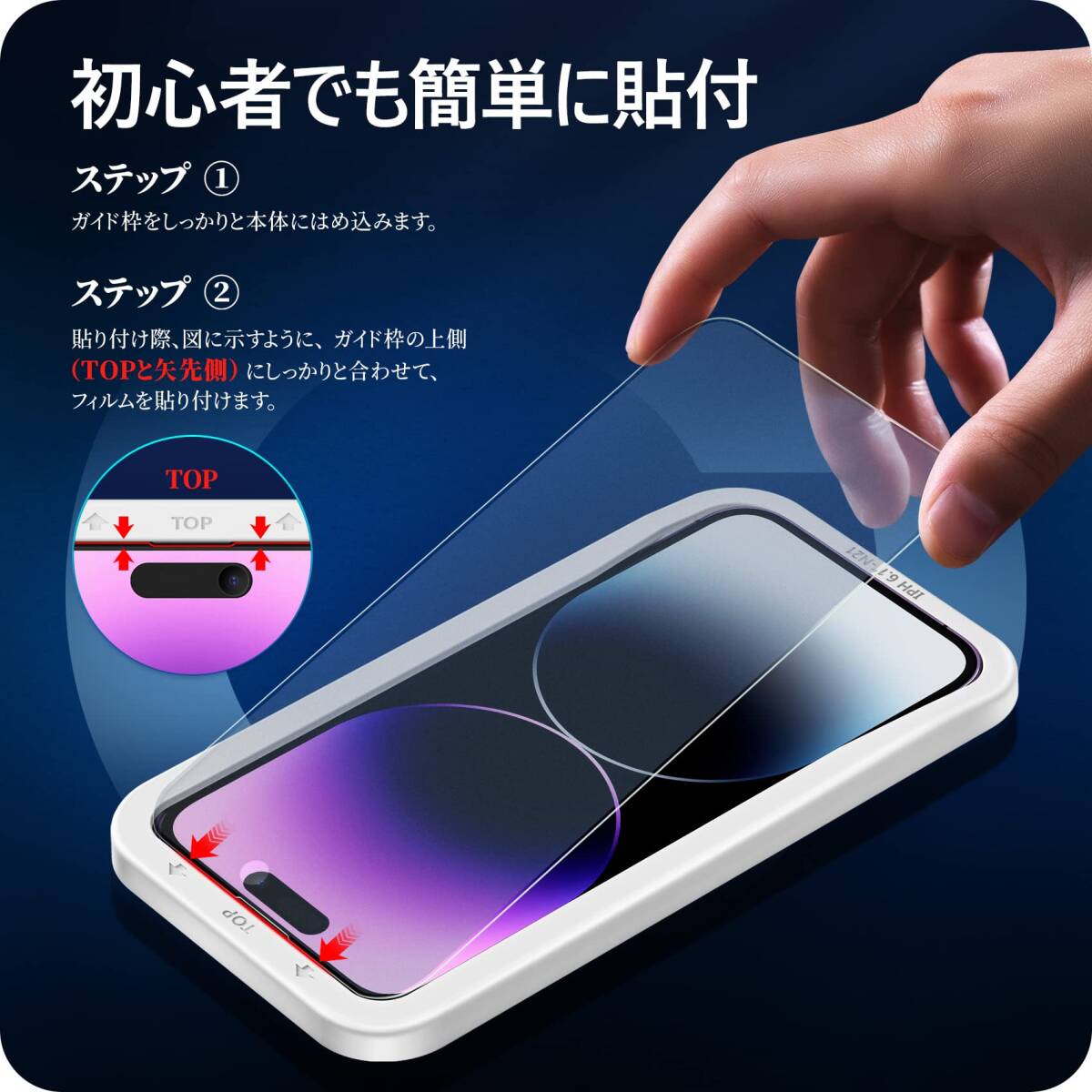 Pro 用 14 ガラスフィルム 液晶 強化 iPhone ガラス アイホン14プロ対応 アンチグレア 保護 フィルム ガイド枠付