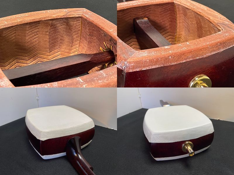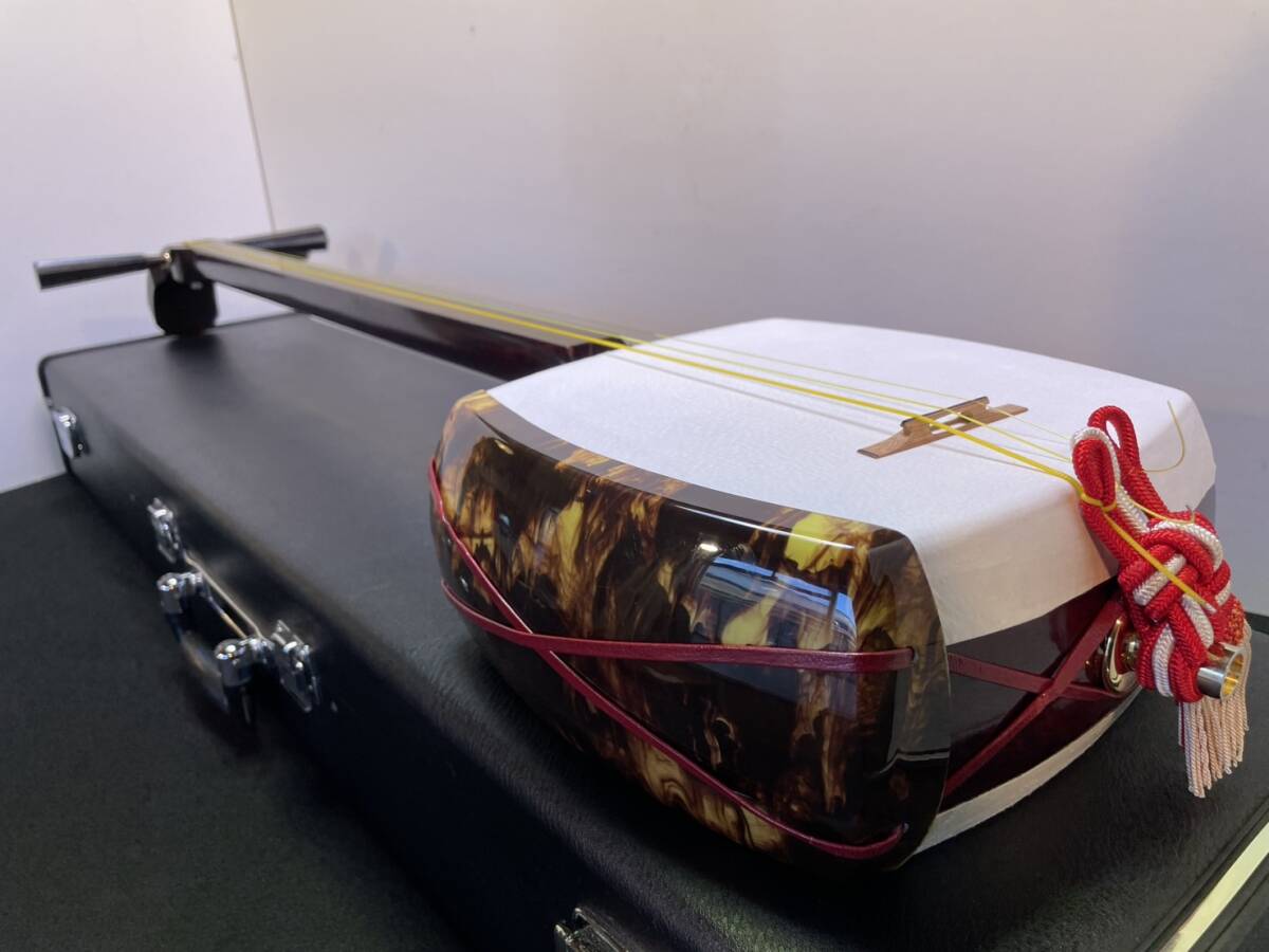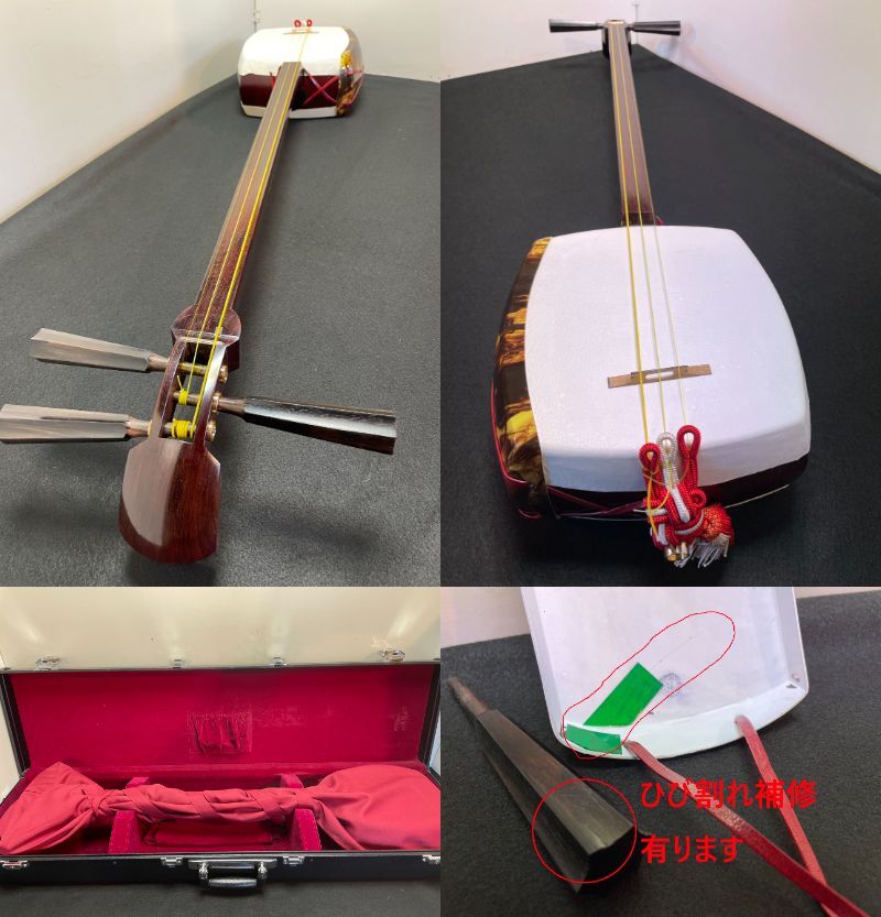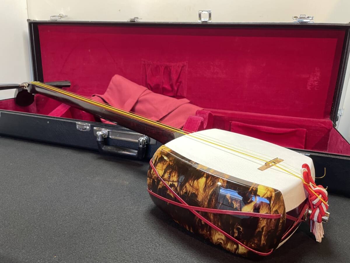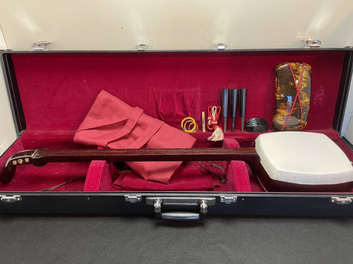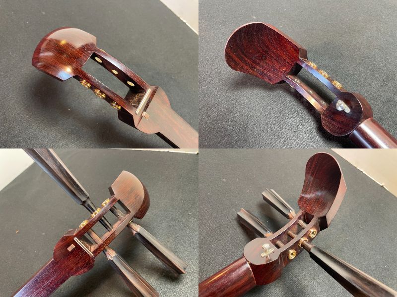 ■硬杢紅木■中棹三味線☆金ホゾ二段溝☆綾杉胴☆皮張り替え//