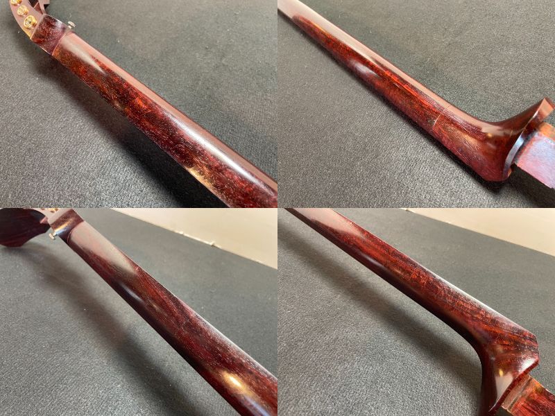 硬杢紅木で重さズッシリの中棹太目の棹で、