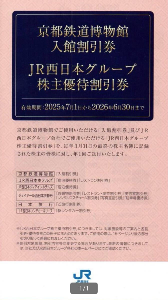★京都鉄道博物館入館割引券・JR京都伊勢丹各種割引券付「JR西日本グループ優待割引券」1冊。