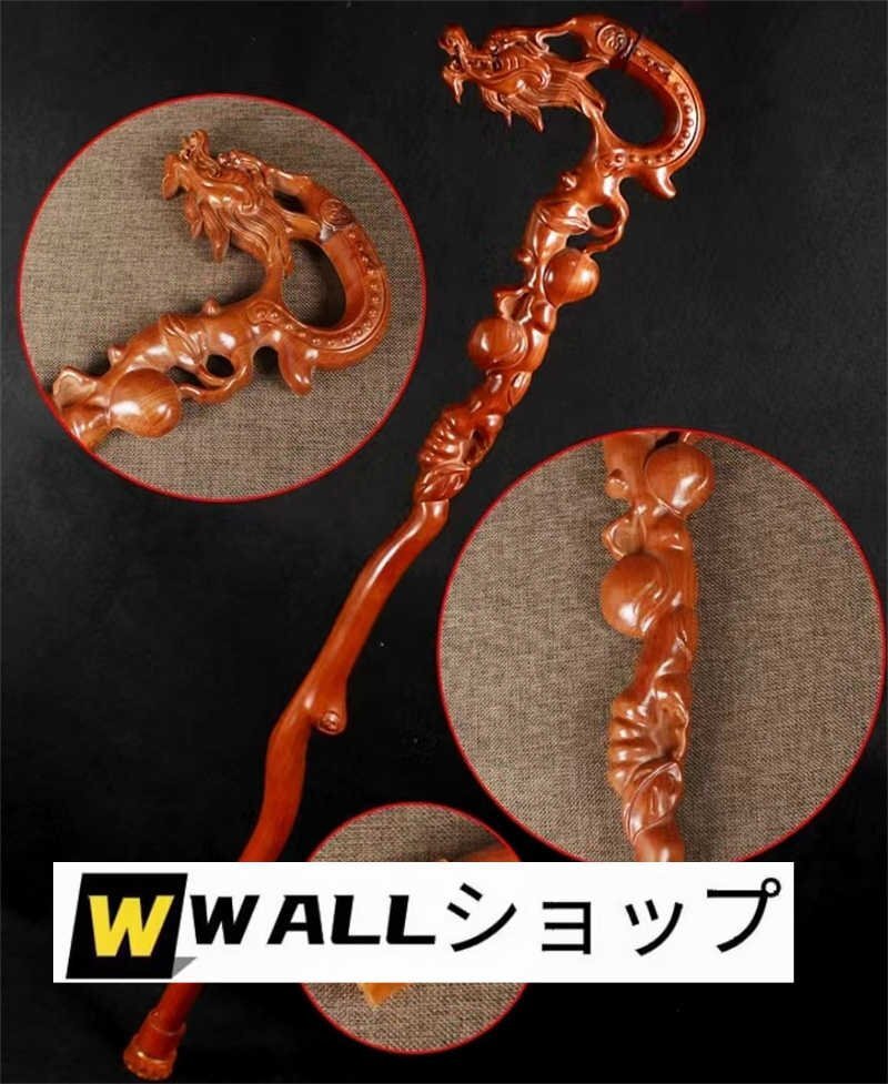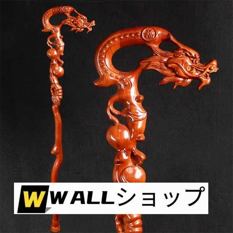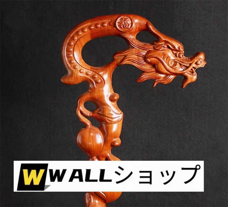 杖 泰山 桃木 が竜頭 実木彫刻老人 "●彫刻:立体彫刻 ●スタイル:クラシック ●材質:桃 ●サイズ:杖の長さ約94cm*最大幅約19cm ●目上の人に孝行を名目にして,老人への愛を杖に隠す者の誠意を持"
