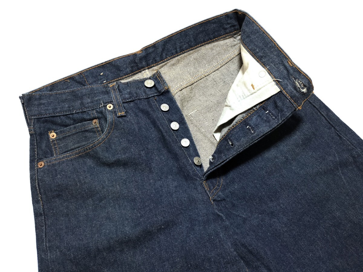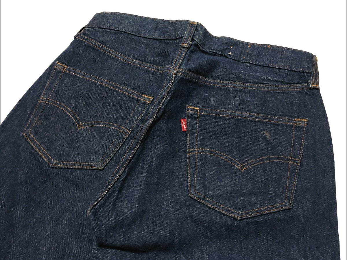 | 商品説明 | Levis リーバイス 501ハチマル前期のご紹介です。 ●工場番号524/テキサス州 エルパソ ●刺繍文字赤タブ(スモールe) ●内股シングルステッチ ●アウトシーム脇割り ●裾チェーンステッチ 赤耳終了直後の84年1月製造で、ほぼ赤耳と同じディテールです。 これといったダメージ等は見当たりませんが、紙パッチが欠品しています。 前期ハチマルとしてはかなりの濃紺美品かと思います、御覧の通りほぼほぼ色落ちていません。 チェーンステッチで裾上げされています。 近年では80年代の501の古着はそのほとんどが色落ちの進んでいる物かと思います。 お探しの方は是非! 40年が経過したビンテージ衣料ですので、微細な汚れ等はご容赦ください。 表記サイズ W35 L36 実数(約) ウエスト(内周)81cm 股上30cm 股下70cm 裾幅21cm 総丈94㎝ 注意深く検品しておりますが状態に関しては受け取り方に個人差もございますので、完全な未使用品をお求めの方やあまり細かい部分まで気になる方はご入札をお控えください。 |