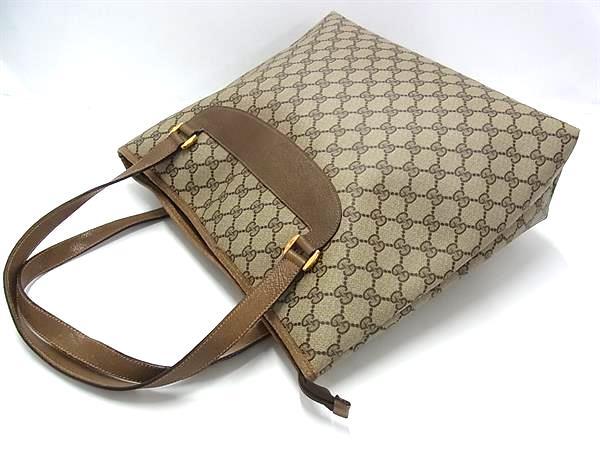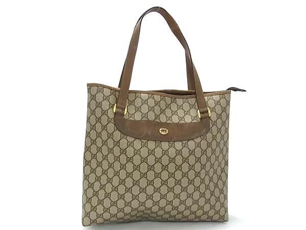 1円 GUCCI オールドグッチ 89 02 904 ヴィンテージ インターロッキングG PVC×レザー トートバッグ ショルダー 肩掛け ブラウン系 FP7797
