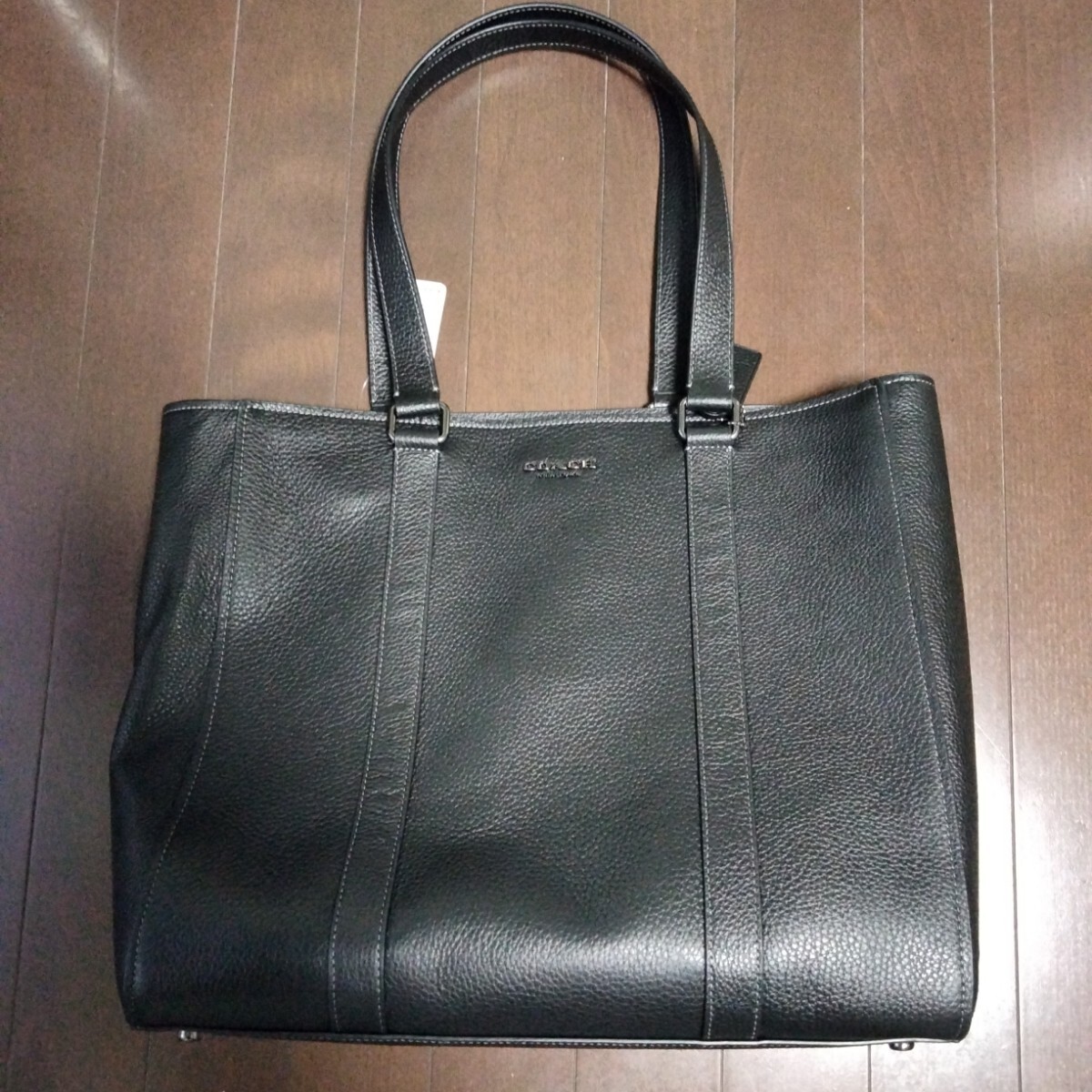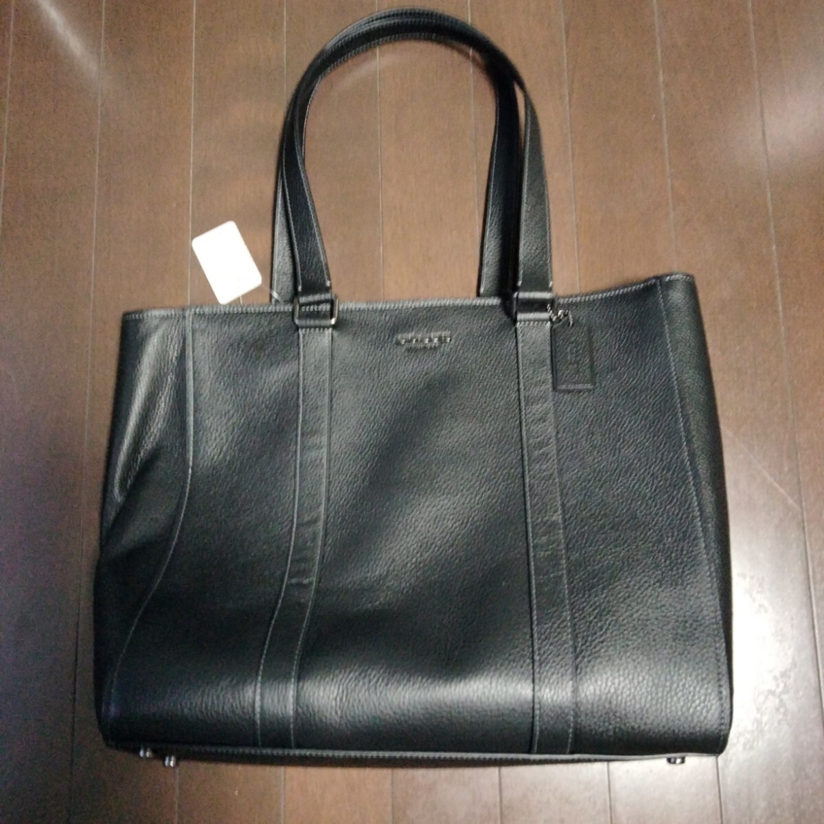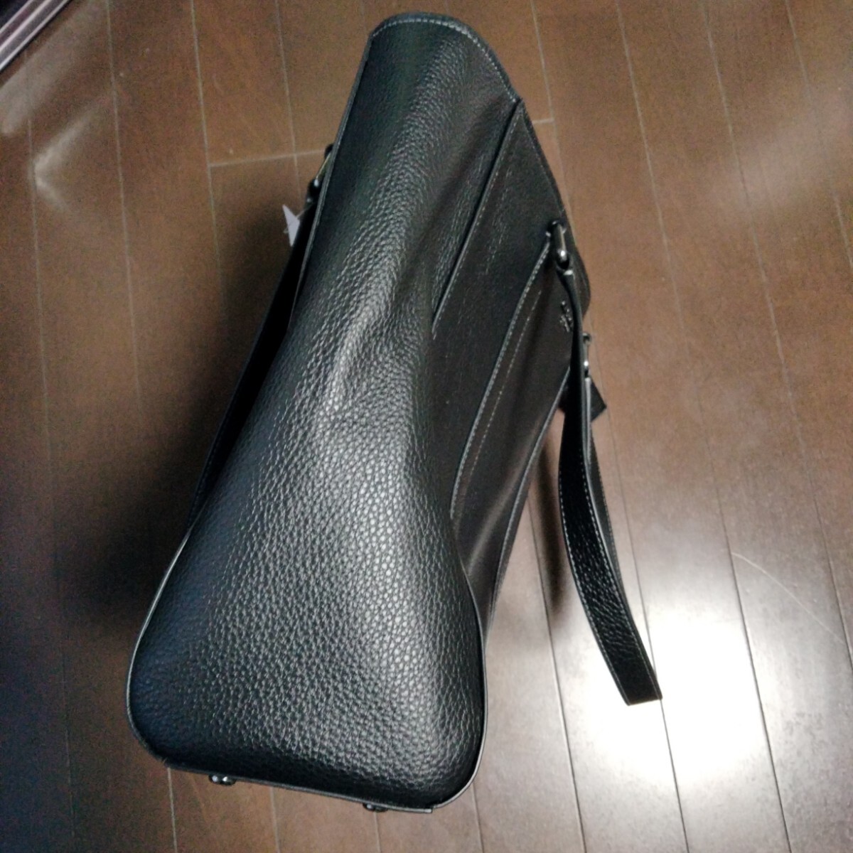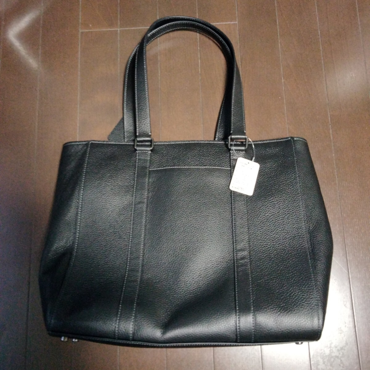高品質なレザー製の黒いダブルハンドルトートバッグ、洗練されたデザインで日常使いに最適です。