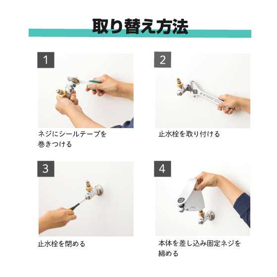 ・ 横水栓を交換するだけで簡単に自動水栓に交換できます。