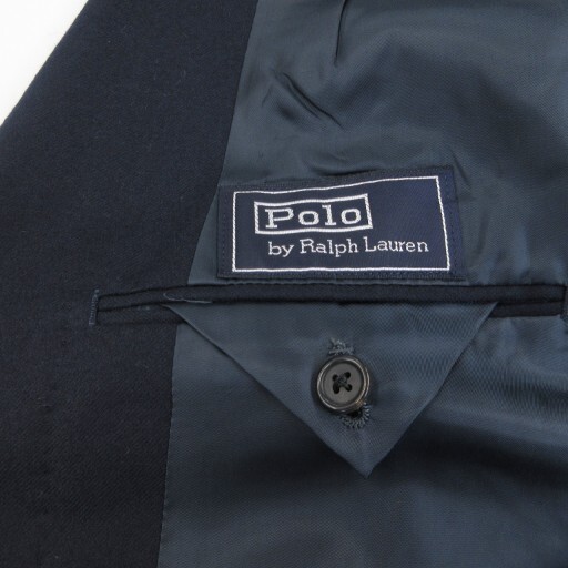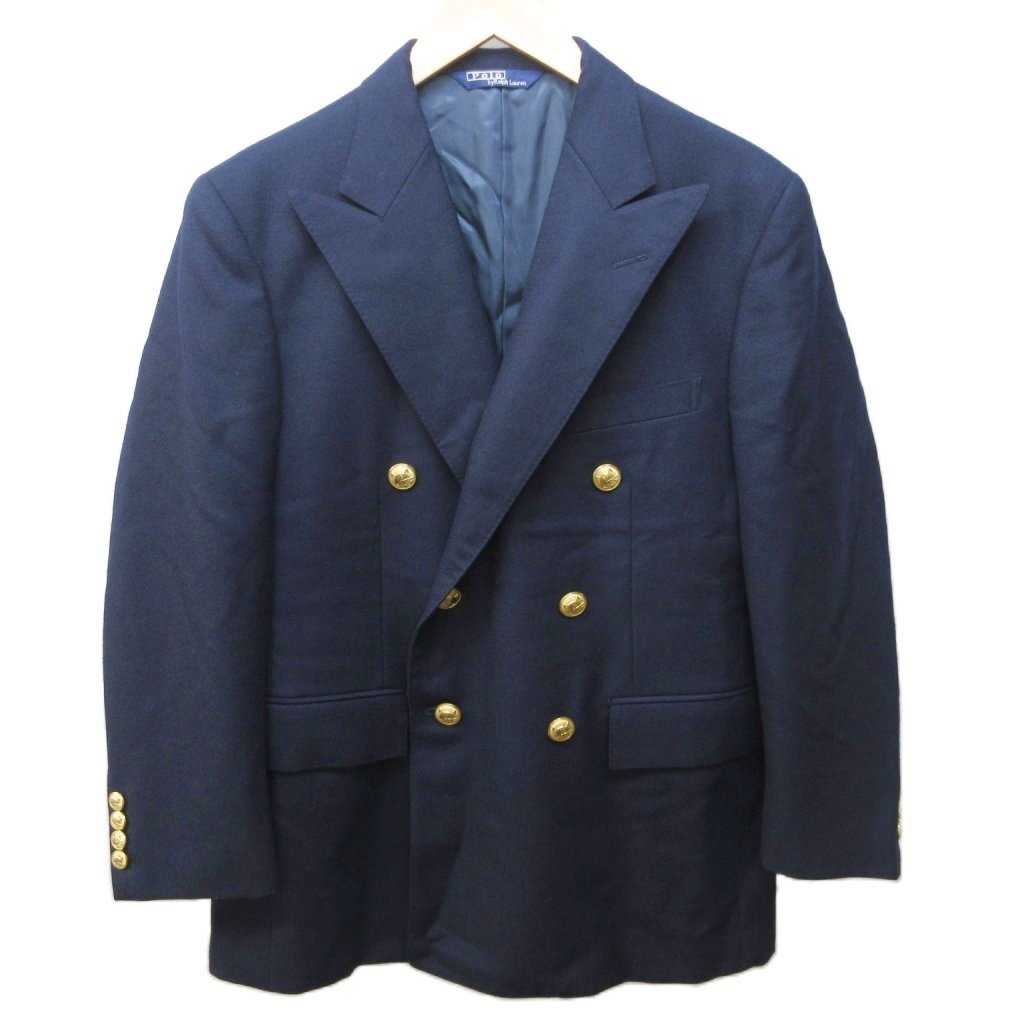 ポロ バイ ラルフローレン Polo by Ralph Lauren テーラードジャケット ブレザー ウール 金ボタン ダブル 総裏 90A4 紺 ■MNK3